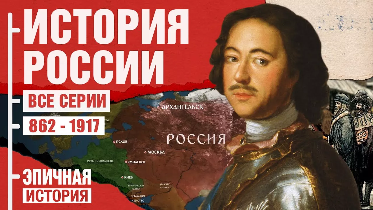 Теперь в 4K 60FPS. От князя Рюрика до русской революции - это сборник 5 эпизодов истории России. В нём мы расскажем об объединении Руси, о борьбе с польскими интервентами и о Смутном времени. Покажем становление Российской Империи при Петре I и победе над Швецией в Северной войне. Союз, а затем и борьба с Наполеоном, императором французов, восстание декабристов, отмена крепостного права, а так же противостояние тогдашней оппозиции царскому режиму, Первая Русская революция, русско-японская война, Первая Мировая война, крах самодержавия и февральская революция и дальнейший приход к власти большевиков - всё в этом видео. Телеграм: https://t.me/epichistorytv Поддержать канал: https://ehdonate.com 0:00 — Древнейшая история Руси 1:12 — Призвание варягов (Рюрик) 1:36 — Киевская Русь 2:19 — Феодальная раздробленность Руси и монгольское нашествие 5:27 — Создание Русского государства 7:14 — Смутное время 9:00 — Приход к власти Романовых (Михаил I) 9:38 — Алексей I 11:12 — Фёдор I 11:32 — София (регент Ивана V и Петра I) 12:14 — Пётр I (провозглашение Российской империи) 14:44 — Эпоха дворцовых переворотов 16:47 — Пётр III 18:14 — Екатерина Великая 21:21 — Павел I 22:11 — Александр I 25:52 — Николай I 29:45 — Александр II 34:36 — Александр III 37:41 — Николай II 43:42 — Февральская и Октябрьская революции Эпичная История познакомит вас с самыми драматичными и удивительными событиями в истории, от гигантских конфликтов, таких как Первая мировая война, до эпичной истории таких стран, как Россия. Я использую анимированные карты, изображения и тщательно изученные источники, собираю как можно больше фактов и все для того, чтобы вы могли погрузится в эти впечатляющие события из нашего прошлого. Станьте спонсором канала, и вы получите доступ к эксклюзивным бонусам. Подробнее: https://boosty.to/epichistory По рекламе и сотрудничеству: ads@ehtv.media • https://ehtv.media Музыка: Filmstro #ЭпичнаяИстория #ИсторияРоссии