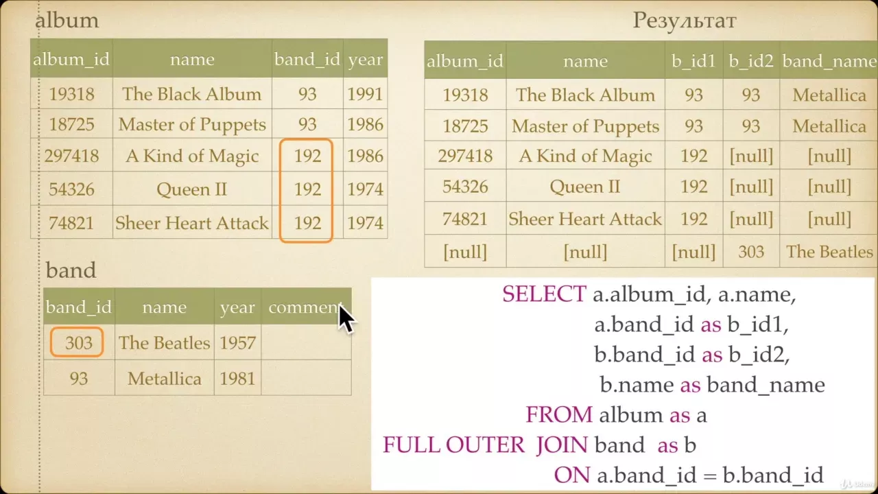 Начальный курс SQL.Полное внешнее соединение FULL OUTER JOIN