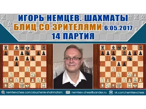 Подписаться на канал - https://goo.gl/oESyyJ Обучение шахматам - http://goo.gl/fo5EOw Мой интернет-магазин - http://chess-video.ru/ Поддержите наш канал - http://www.nemtsevchess.com/donate Онлайн-блиц 3. 06.05.2017. Игорь Немцев. Открытые уроки Игоря Немцева - https://goo.gl/pCi0W9 Еще много интересного - https://www.youtube.com/channel/UCkvVQ19j7t30eRSDWeJCbUg/playlists Смотрите в прямом эфире! На Youtube - https://www.youtube.com/channel/UCkvVQ19j7t30eRSDWeJCbUg/live На Twitch - https://www.twitch.tv/gurunemtsev На Goodgame - https://goodgame.ru/channel/nemtsevchess/ Автор видео - Игорь Немцев, мастер ФИДЕ, тренер высшей категории Сайт Игоря Немцева - http://www.nemtsevchess.com Пишите мне - nemtsev.chess@yandex.ru Обучающие видео Игоря Немцева на канале Сергея Шипова - https://goo.gl/plX4uH Подписывайтесь на канал! Делитесь в соцсетях! Пишите комментарии! Ставьте лайк! Поддержите канал! http://www.nemtsevchess.com/donate