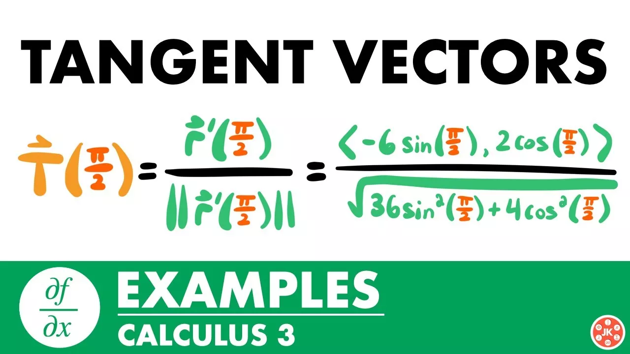 Examples For How to Find Tangent Vectors & Tangent Lines for Space Curves (Calculus 3) ➡️ Download my FREE Surfaces Cheat Sheets: https://www.jkmathematics.com//surfaces-cheat-sheets 🖥️ Membership Site (community & bonus content): https://www.jkmathematics.com/plus 🌐 My Website: https://www.jkmathematics.com ⭐️ Support Me on Patreon: https://www.patreon.com/JKMath In this video we look at examples of using the derivative of a vector function to find a tangent vectors at a point along a space curve. Additionally, we look at examples of finding the parametric equations for a tangent line at a point along a space curve, as well as examples of finding unit tangent vectors. This video series is designed to help students understand the concepts of Calculus 3 at a grounded level. No long, boring, and unnecessary explanations, just what you need to know at a reasonable and digestible pace, with the goal of each video being shorter than the average school lecture! Calculus 3 requires a solid understanding of concepts from calculus 2, calculus 1, precalculus, and algebra. This includes limits, differentiation, advanced integration techniques, applications of derivatives and integrals, polar coordinates, parametric equations, trigonometric functions, logarithms, factoring, equation manipulation, graphing, and much more. If you are not familiar with these prerequisite topics, be sure to learn them first! Video Chapters: 0:00 Example 1: Tangent Vector at t=2/3 for〈3t, 9t²〉 7:59 Example 2: Tangent Vector at t=π/4 for〈4cos(t), 2sin(t)〉 17:26 Example 3: Tangent Line at t=2 for〈t, t², t^3〉 24:34 Example 4: Tangent Line at t=π/6 for〈2sin(t), 2cos(t), 5〉 30:02 Example 5: Tangent Line at t=3 for〈e^(3-t), sin(πt/3), √(3t)〉 36:59 Example 6: Unit Tangent Vector at t=π/2 for〈6cos(t), 2sin(t)〉 41:53 Example 7: Unit Tangent Vector at t=1 for〈t, t², ln(t)〉 45:08 Example 8: Unit Tangent Vector at t=0 for〈e^t*sin(t), e^t*cos(t), e^t〉 📝 Lesson Video For These Examples: https://www.youtube.com/watch?v=JyDGb55Qjgw ⏩ Next Lesson: https://www.youtube.com/watch?v=P5afd_TGwp0 📺 Calculus 3 Playlist: https://www.youtube.com/playlist?list=PLHdRLeAbIZE5yZ7ydR9qeB_B6CcVFlX63 📺 Calculus 2 Playlist: https://www.youtube.com/playlist?list=PLHdRLeAbIZE7KQ922piyRIDAj30XYcOIu 📺 Calculus 1 Playlist: https://www.youtube.com/playlist?list=PLHdRLeAbIZE6krGDQthaQRpLZFLD4ob54 ⚡️Math Products I Recommend⚡️ Graphing Calculator: https://www.amazon.com/Texas-Instruments-TI-Nspire-Graphing-Calculator/dp/B07RL7HM5V?language=en_US Non-Graphing Calculator: https://www.amazon.com/Texas-Instruments-TI-30X-Scientific-Calculator/dp/B00SWWKEAY?language=en_US Financial Calculator: https://www.amazon.com/s?k=ba+2+plus&language=en_US Graphing Paper: https://www.amazon.com/KAISA-Punched-Loose-Leaf-Binders-150sheet/dp/B096V2RYR2?sp_csd=d2lkZ2V0TmFtZT1zcF9hdGY&language=en_US College Rule Paper: https://www.amazon.com/Mead-Filler-College-Punched-15326/dp/B000068UWB?language=en_US My Favorite Pencil: https://www.amazon.com/Quick-Mechanical-Pencil-Assorted-Barrel/dp/B07FC5NGBX?language=en_US My Favorite Erasers: https://www.amazon.com/Prismacolor-Premier-Magic-Erasers-3-Count/dp/B005ENNEJW?language=en_US Calculus Workbook: https://www.amazon.com/Essential-Calculus-Practice-Workbook-Solutions/dp/1941691242?sp_csd=d2lkZ2V0TmFtZT1zcF9hdGY&language=en_US ⚡️Textbooks I Use⚡️ Calculus 1 & 2: https://www.amazon.com/Calculus-Ron-Larson/dp/0547167024?language=en_US Calculus 3: https://www.amazon.com/Multivariable-Calculus-Ron-Larson/dp/1285060296?language=en_US Financial Mathematics: https://www.amazon.com/Mathematics-Investment-Credit-ACTEX-Academic/dp/1566987679?language=en_US ⚡️My Recording Equipment⚡️ iPad Air: https://www.amazon.com/Apple-iPad-Air-5th-Generation/dp/B09V3HJBN3?sp_csd=d2lkZ2V0TmFtZT1zcF9hdGY&th=1&language=en_US Apple Pencil (Gen 2): https://www.amazon.com/Apple-MU8F2AM-A-Pencil-Generation/dp/B07K1WWBJK?sp_csd=d2lkZ2V0TmFtZT1zcF9hdGY&language=en_US Tablet Desk Stand: https://www.amazon.com/OMOTON-Adjustable-Multi-Angle-Aluminum-Convenient/dp/B015FH0XKE?sp_csd=d2lkZ2V0TmFtZT1zcF9hdGY&th=1&language=en_US External Hardrive: https://www.amazon.com/Toshiba-HDTB420XK3AA-Canvio-Portable-External/dp/B079D3D8NR?language=en_US (Commissions earned on qualifying purchases) Follow me on Social Media! https://www.facebook.com/unsupportedbrowser Found this video to be helpful? Consider giving this video a like and subscribing to the channel! Thanks for watching! Any questions? Feedback? Leave a comment! - Josh from JK Mathematics #calculus Disclaimer: Please note that some of the links associated with the videos on my channel may generate affiliate commissions on my behalf. As an amazon associate, I earn from qualifying purchases that you may make through such affiliate links.