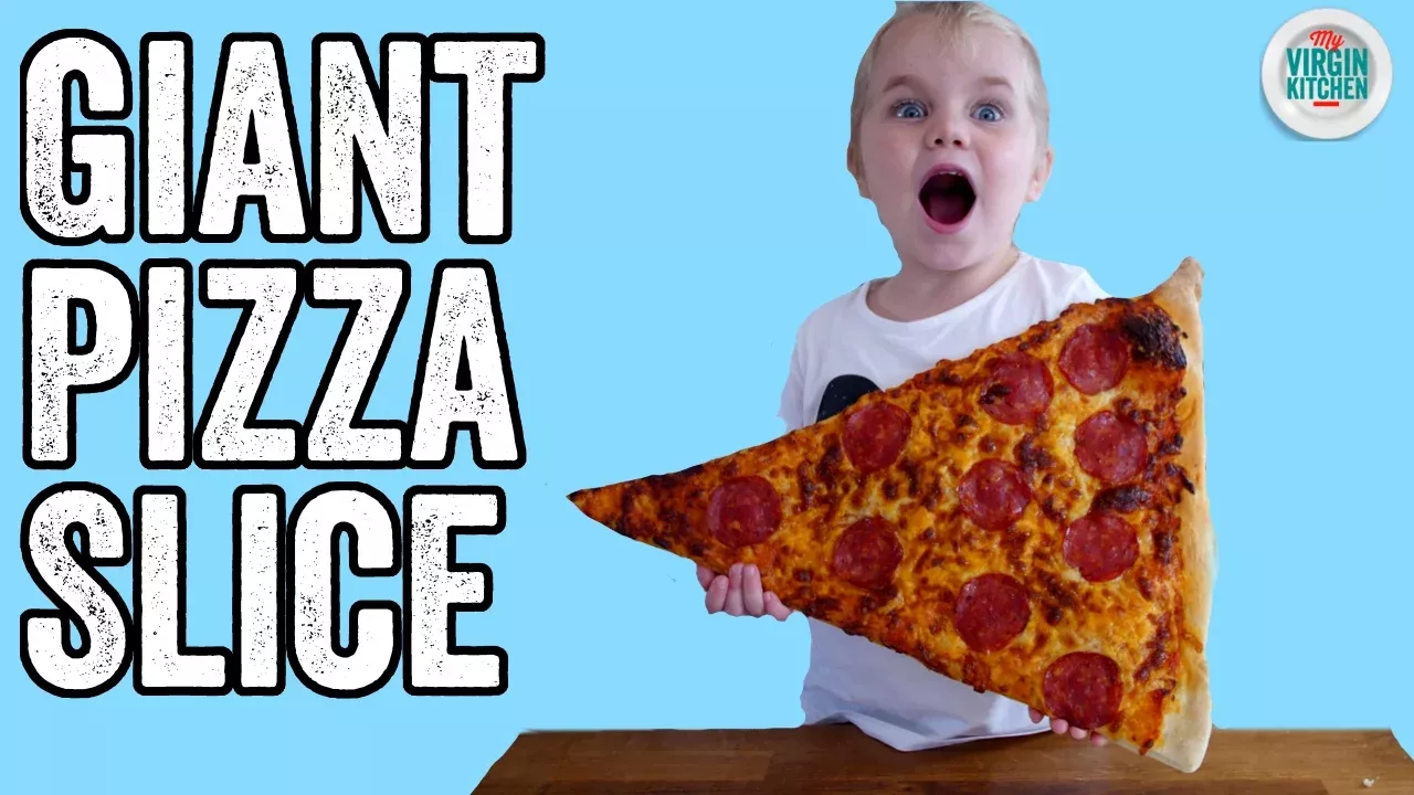 Giant Pizza Slice. Back with Chloe for another giant food and this time it's Giant Pizza! A giant pepperoni pizza slice to be exact. Subscribe for regular videos https://www.youtube.com/user/myvirginkitchen?sub_confirmation=1 Buy my first cookbook! (If you like) https://www.amazon.co.uk/gp/product/0007544596?ie=UTF8&camp=1634&creative=6738&creativeASIN=0007544596 More giant food videos, on the giant food playlist https://www.youtube.com/watch?v=Twm9MY8s7YA&list=PLfItiEY3o1mv8IqALYKrvwfrNMobHMRXw If you would like to translate this video click here https://support.google.com/youtube/answer/6054623?hl=fi&v=Sicw4QnU-CM&ref=share Website https://barrylewis.net/ Twitter http://www.twitter.com/mrbarrylewis Snapchat - 'Myvirginkitchen' Facebook https://www.facebook.com/unsupportedbrowser Instagram https://www.facebook.com/unsupportedbrowser My other channel https://www.youtube.com/channel/UCd0h13f33ouSAKxMQfabL6A My Virgin Kitchen is a YouTube cooking channel created when I wanted to teach myself how to cook and create a video diary of the journey https://www.youtube.com/user/mrbarrylewis. I have never had a professional lesson & am just your every day chap attempting recipes to inspire you guys to try too. My Wife Becky (aka Mrs Barry) now joins in on the channel too, we upload 2 recipe videos per week, but some fun is had too on Sunday when it is our Funday where anything goes....including giant foods, mini foods, taste testing foods sent from around the World, kitchen gadget testing and many more. Any requests for recipes / cool stuff you've seen let us know! I try my best to reply to as many comments as possible, but it is hard to as we are busy working on the next video, but please interact with eachother and be respectful :-)