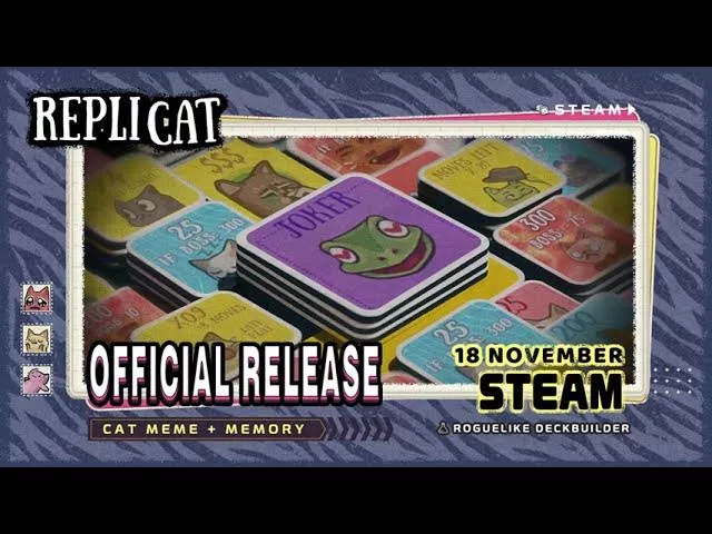 More cats × more card-flipping × more chaos! Cat-Meme Memory-Matching Roguelike Deckbuilder The full version of Replicat is now officially LIVE on Steam! Enjoy a 14-day launch discount, available now for only $8.99! Come and have a wonderful time flipping cards, building wild combos, and chasing high scores! https://store.steampowered.com/app/3509430/_/