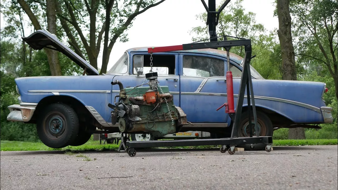 Part 1: https://www.youtube.com/watch?v=nPqSIzFLdMQ Turn on subtitles or view the transcript at the bottom of the description if you'd like explanations on what I'm doing throughout the video. Last time I worked on this car, I got it running and driving after it's been sitting for presumably 41 years. However, It turned out that it has a severely cracked engine block from the cooling system not having any antifreeze in it. I found a replacement engine to install and after that, I got to taking care of a handful of other things to get the car actually roadworthy. Chapters: 00:00 - Setting things up to remove the cracked engine 03:53 - Removing the core support and wiring 07:42 - Removing the exhaust 08:52 - Disconnecting the transmission and clutch linkage 09:40 - Unbolting the engine mounts 09:57 - A few other hoses, wires, throttle linkage 11:04 - Hoisting it up 12:08 - Realizing I should've just left the transmission attached because the mounts bolt to the bell housing 13:55 - Up and out 15:00 - Removing the clutch, flywheel, and bellhousing 18:48 - Different size oil pans, swapping the oil pans 26:57 - Swapping over the rest of the necessary parts 36:36 - Cleaning the engine bay 38:49 - Reinstalling the engine/transmission 46:37 - Test firing 47:30 - Reinstalling the core support/radiator 51:02 - New wheels and tires 53:22 - Wiring in the alternator 54:50 - Getting ready to drive the car back to my garage for further repairs 01:00:20 - First real drive 01:04:26 - Cleaning up some of my work 01:05:49 - Addressing the fuel tank and system 01:20:41 - Replacing the pinion seal (I lost some of this footage) 01:22:18 - Cleaning the outside 01:30:03 - Cleaning the inside 01:45:15 - Fixing the door latches 01:48:26 - Last of the clean up 01:50:37 - Flushing the radiator 01:53:42 - Driving it back to its owner 01:56:30 - Cat