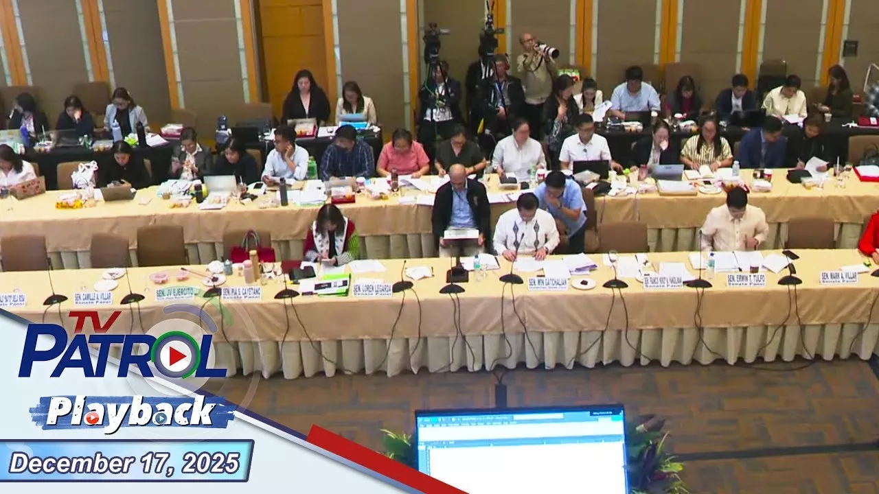 Narito ang mga Balita mula sa TV Patrol ngayong Disyembre 17, 2025. Chapters: 00:00 - Intro & Headlines 00:38 - Guro sa Tondo, arestado sa pamimilit kumain ng ipis sa estudyante 03:21 - Nobyo ng nawawalang "Bride-to-be," itinuturing na Person of Interest 06:43 - 1-taong gulang na bata na tinangay ng street dweller, naibalik na sa magulang 09:36 - Bondi Beach shooting suspects, namalagi sa Davao City bago ang atake 13:25 - Lisensya ng viral pickup driver sa Antipolo, revoked na ng LTO 16:42 - MMFF Parade of Stars sa Makati, pinaghahandaan na 19:36 - Refund ng electric bill deposit, isinusulong ng consumer group 23:31 - Weather Update: Maulan sa maraming bahagi ng bansa 26:17 - DLSU Green Archers, Champion sa UAAP Season 88 29:29 - Bicameral Conference para sa 2026 National Budget, target tapusin ngayon 33:04 - Winning Diskarte: Tips sa paggastos ng Christmas Bonus 41:54 - EDSA Rehab Phase 1 simula na sa Dec 24; Cashless payment sa EDSA Busway 48:43 - Health Tips: Pag-iwas sa sakit ngayong holiday kainan 52:03 - UP Lantern Parade 2025 highlights 56:12 - PH Team, humakot ng ginto sa 33rd SEA Games Thailand 59:07 - OFFICIAL: ABS-CBN programs, lilipat na sa ALLTV simula Jan 2026 01:01:10 - Extro: Welcome back, Denise Dinsay! May mga ulat mula kina: Zen Hernandez Adrian Ayalin Alvin Elchico Ganiel Krishnan Ariel Rojas TV Patrol is the flagship newscast of ABS-CBN. Catch the latest and top news and analysis today and every day brought to you by ABS-CBN News in the service of the Filipino. Get access to the latest and breaking news from TV Patrol on TFC Online if you’re watching overseas. Visit us here https://www.iwanttfc.com/ Stay updated by visiting https://news.abs-cbn.com/ For more TV Patrol Playback videos, click the link below: https://www.youtube.com/playlist?list=PLgyY1WylJUmhb897gsKGdgqiJiQVAt9m4 For more TV Patrol videos, click the link below: https://www.youtube.com/playlist?list=PLgyY1WylJUmgL3VvLVxQKSNKxlEYkX9x6 For more TV Patrol Full Episode Replays, click the link below: https://www.youtube.com/playlist?list=PLgyY1WylJUmggcgcassFx3EWry7nZEPW2 For more latest news and analysis from ABS-CBN News videos, click the link below: https://www.youtube.com/playlist?list=PLgyY1WylJUmg4pcvfM9a96rbUcLD_0P_U For more ABS-CBN News, click the link below: https://www.youtube.com/playlist?list=PLgyY1WylJUmgUHWUpi2ioSp4xAP1SmAaf Subscribe to the ABS-CBN News channel! - http://bit.ly/TheABSCBNNews Watch the full episodes of TV Patrol on iWantTFC: https://www.iwanttfc.com/ Visit our website at http://abs-cbn.com/ Facebook: https://www.facebook.com/unsupportedbrowser Twitter: https://twitter.com/abscbnnews