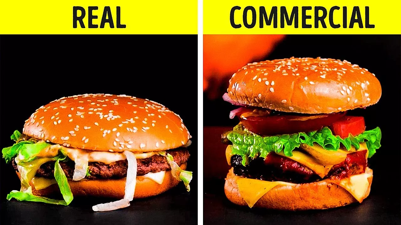 TIMESTAMPS: 00:13 How to make a burger photo 02:34 Commercial tricks with food 04:30 Commercial VS real 06:15 How to make a fake cake 09:32 Fake ice 11:47 Smart trick with deodorant This video is made for entertainment purposes. We do not make any warranties about the completeness, safety and reliability. Any action you take upon the information on this video is strictly at your own risk, and we will not be liable for any damages or losses. It is the viewer's responsibility to use judgment, care and precautions if one plans to replicate. The following video might feature activity performed by our actors within controlled environment- please use judgment, care, and precaution if you plan to replicate. All product and company names shown in the video are trademarks™ or registered® trademarks of their respective holders. Use of them does not imply any affiliation with or endorsement by them. ---------------------------------------------------------------------------------------- Our Social Media: 5-Minute Crafts YouTube: https://www.youtube.com/channel/UC295-Dw_tDNtZXFeAPAW6Aw?sub_confirmation=1 Facebook: https://www.facebook.com/unsupportedbrowser Instagram: https://www.facebook.com/unsupportedbrowser Twitter: https://twitter.com/5m_crafts Subscribe to 5-Minute Crafts GIRLY: https://www.youtube.com/channel/UC2etEuPIfohP4P53wM0KImA?sub_confirmation=1 Subscribe to 5-Minute Crafts PLAY: https://www.youtube.com/channel/UC57XAjJ04TY8gNxOWf-Sy0Q?sub_confirmation=1 Subscribe to 5-Minute Crafts MEN: https://www.youtube.com/channel/UCuGS1iJpM_4ZYFp62mia2xQ?sub_confirmation=1 The Bright Side of Youtube: https://www.youtube.com/channel/UC4rlAVgAK0SGk-yTfe48Qpw?sub_confirmation=1 ---------------------------------------------------------------------------------------- For more videos and articles visit: https://brightside.me/ For brand partnership enquiries: brands@thesoul-publishing.com Music by Epidemic Sound: https://www.epidemicsound.com/