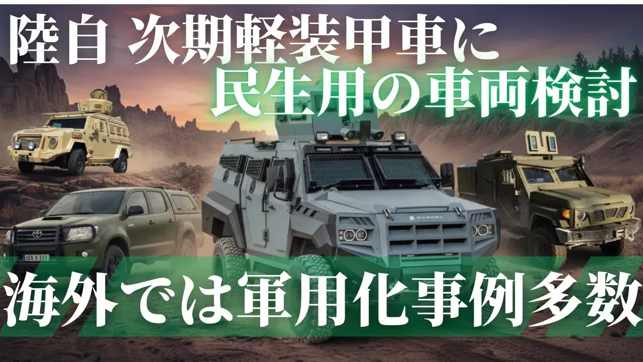 陸上自衛隊は、老朽化した軽装甲機動車の後継として、民生用の車両を防弾化して導入することを検討していると報じられました。具体的には、トヨタ自動車の「ランドクルーザー」2車種と、いすゞ自動車の「D-MAX」の計3車種を調達し、評価・検討を進める方針とされています。この動きは、既存の軽装甲機動車(LAV)の老朽化が深刻な状況にあり、新たな車両の取得が喫緊の課題となっていることを示しています。 世界各国では、民生用車両を改良して軍用車として運用する事例が数多く見られます。特に日本車は、その高い信頼性、部品入手の容易さによる整備性、過酷な砂漠や山岳地帯でも安定して稼働する耐久性・走破性、そして装甲キットや武器架台の取り付けが比較的容易な汎用性から、非常に高い人気を誇っています。多くの国の軍隊で採用されており、中でもトヨタ車は特に好まれています。ここでは、そうした事例をいくつかご紹介します。 ■関連動画 https://www.youtube.com/watch?v=0vjICmNo9Oc https://www.youtube.com/watch?v=ziXuDawnco4 https://www.youtube.com/watch?v=Qd4QcESIwLE https://www.youtube.com/watch?v=2ysT9omtms8 世界の軍事・安全保障・防衛・ミリタリーニュースをわかりやすく、ゆっくり解説します。
