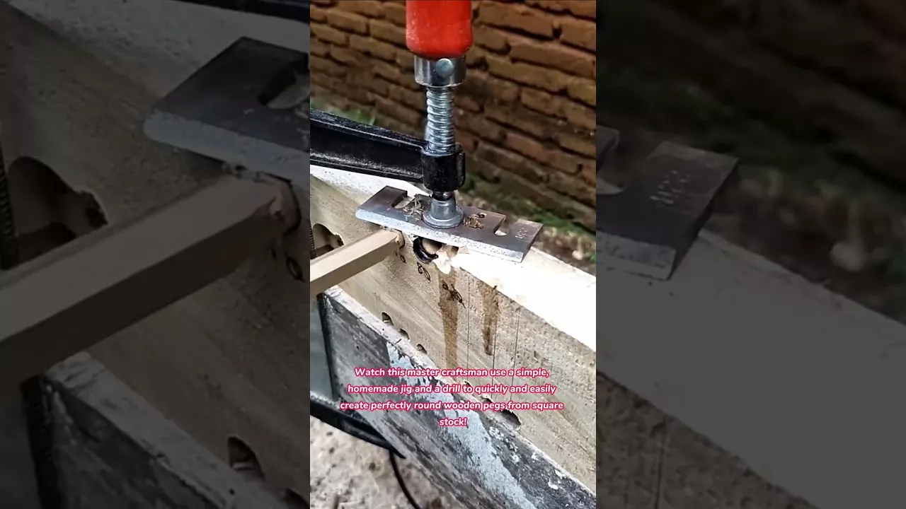 Watch this master craftsman use a simple, homemade jig and a drill to quickly and easily create perfectly round wooden pegs from square stock! 🤩 This DIY hack is a must-try for furniture making and joinery! #joinery #craft #skills