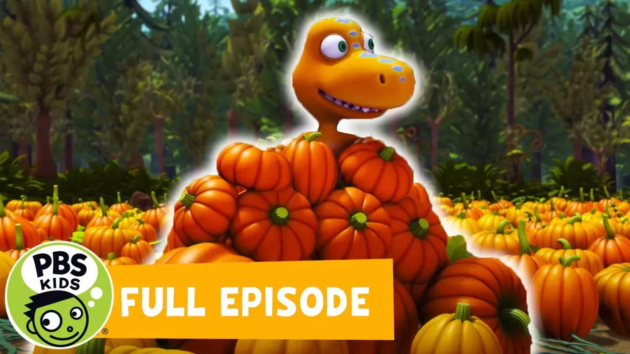 Dad takes the kids on a special Night Train to Troodon Town, where the Troodons have decorated their Roundhouse into a "haunted house" for a spooky party. The kids end up meeting a strange new nocturnal creature - a mammal named Vlad Volaticotherium, who was hiding in the roundhouse trying to get some sleep. / The Pteranodon family learns more about the customs of their neighbors, the Lambeosaurus family, when they are invited for the first time to accompany them to the Big Pond to celebrate "Gourd Day" - a kind of Mesozoic Halloween. The kids see their first pumpkins, and Larry Lambeosaurus even shows our family how to hollow them out and carve faces into them. Watch and play more videos and games at https://pbskids.org/ or download the *FREE* PBS KIDS Video and Games app at https://pbskids.org/apps