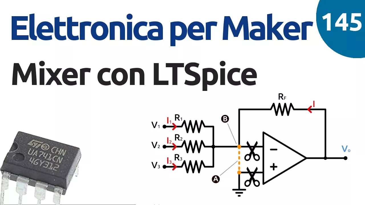In questo video simuleremo un sommatore di segnali (mixer) con amplificatore operazionale e LTSpice. Video n.145 del corso Elettronica per Maker in 100 video. Tutorial di elettronica. Sorgenti, schemi e slide su github: https://github.com/zmaker/elettronica100 L'indice dei video: https://www.zeppelinmaker.it//elettronica100/ Altre informazioni e libri sul mio sito: www.zeppelinmaker.it Altre informazioni e sul libri mio sito: http://www.zeppelinmaker.it La playlist elettronica: https://www.youtube.com/playlist?list=PL9_01HM23dGHiX4h_6v9B1GIv6nGWraxD La playlist su Arduino: https://www.youtube.com/playlist?list=PL9_01HM23dGEDNNfR6BtlDWD8DDoAcLOT La playlist coding sul: https://www.youtube.com/playlist?list=PL9_01HM23dGEUz_JHktidbjPVauREQnsl ATTENZIONE: Per ovvi motivi di tempo non posso correggere o analizzare gli sketch e schemi che postate nei commenti o che inviate via mail. Rispondo a tutte le domande e le richieste ma "non faccio i compiti per voi". Se vi serve uno sviluppo ad hoc contattatemi in privato.