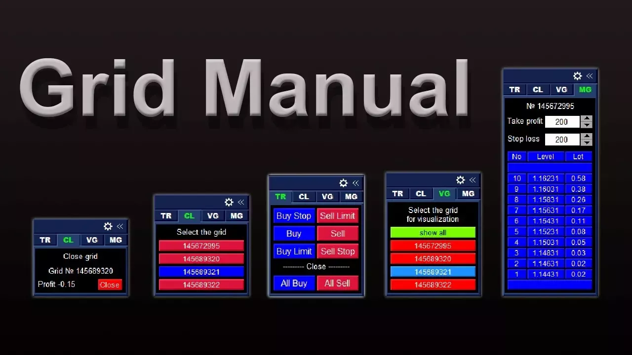Grid Manual - trading panel for manual trading on a strategy with averaging losses. Grid Manual МТ4: https://www.mql5.com/en/market/product/35833 Grid Manual МТ5: https://www.mql5.com/en/market/product/69021 Full instructions: https://tradingsoft.info/grid-manual