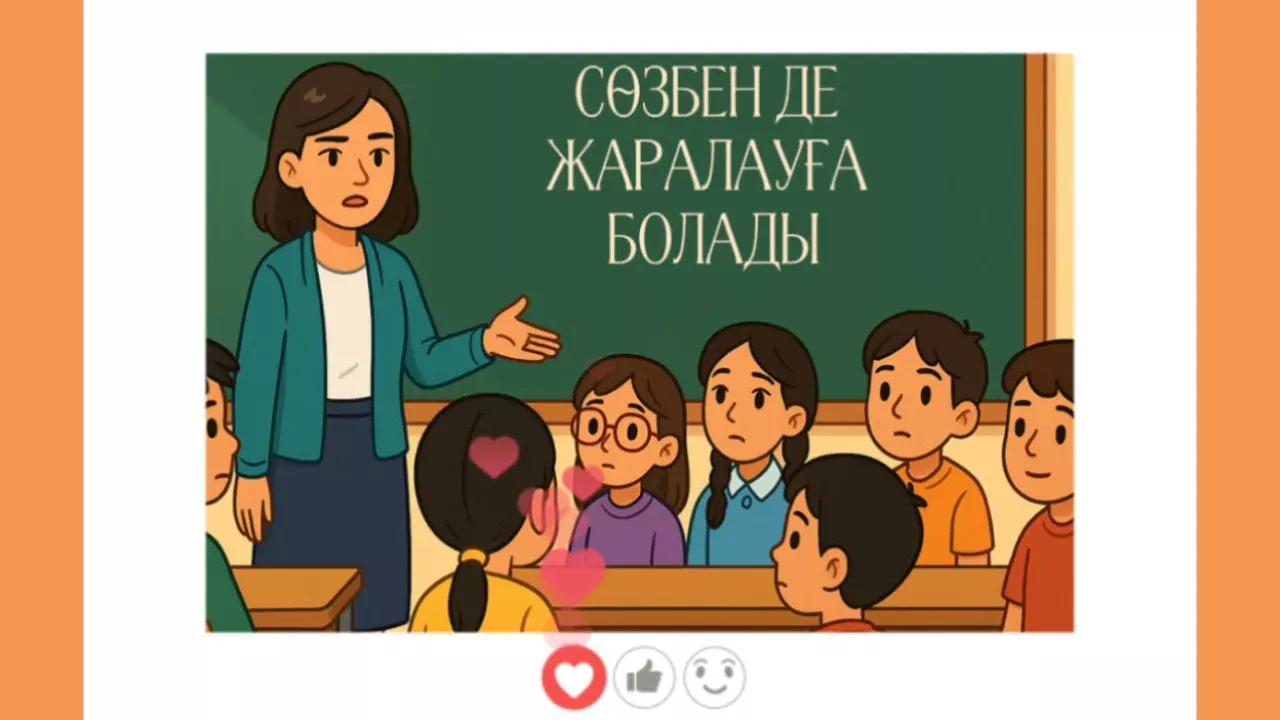 Балалар, бүгін біз өте маңызды тақырып туралы сөйлесеміз – буллинг. Буллинг дегеніміз – біреуді әдейі ренжіту, қорқыту, мазақ ету, шеттету. Кейде бұл сөзбен болады. Мысалы, біреуге жаман ат қою, сыртынан өсек айту, мазақтап күлкі ету. Сөз кейде пышақтан да өткір. Бір ренжітетін сөз адамның көңілін түсіреді, өзіне деген сенімділігін жоғалтады. Музыка взята с Pixabay (https://pixabay.com/music/)