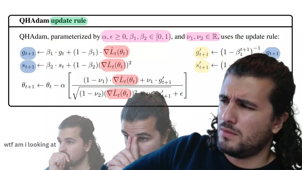 In this video, I’ll show you how to read the math section of deep learning paper with a simple method I use. # Table of Content - Introduction: 0:00 - step 0 : relax : 0:47 - step 1 : identify all formula shown or referred : 1:28 - step 2 : take the formulas out of the digital world : 2:04 - step 3 : work on them to translate symbols into meaning : 2:34 - example with QHAdam formulas (0) : 4:10 - example with QHAdam formulas (1) : 4:56 - example with QHAdam formulas (2) : 6:46 - example with QHAdam formulas (3) : 8:35 - step 4 : summarize the meanings into an intuition. 26:23 - Conclusion : 26:50 TLDR: It's a 5 step process: step 0 : relax step 1 : identify all formula shown or referred step 2 : take the formulas out of the digital world step 3 : work on them to translate symbols into meaning step 4 : summarize the meanings into an intuition. ---- Join the newsletter for weekly AI content: https://www.yacinemahdid.com/ Join the Discord for general discussion: https://discord.com/invite/QpkxRbQBpf ---- Follow Me Online Here: GitHub: https://github.com/yacineMahdid LinkedIn: https://www.linkedin.com/in/yacinemahdid/ ___ Have a great week! 👋