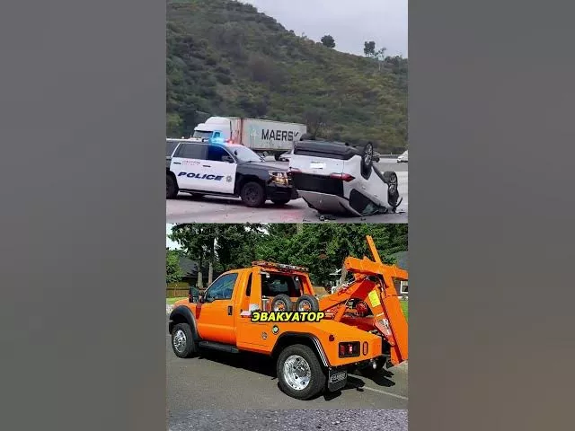 Ликвидация ДТП на дорогах США! Перевёрнутую машину не стали ждать, пока заберёт эвакуатор. Полицейский упёрся своим бампером-кинджалом и аккуратно сдвинул авто на обочину, осторожно освобождая проезд. Такой метод быстро возвращает движение в нормальный поток.