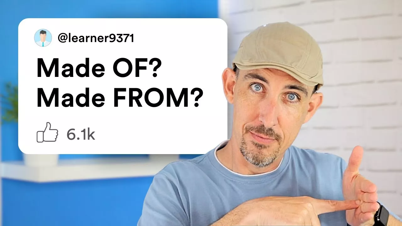 🔥 https://www.onlinelanguageacademy.com/quickfix.htm 👈 Download the English Quick Fix eBook here. 🎯 MY ENGLISH COURSES: 👉 Brilliant B2 (Upper Intermediate) Course: https://learn.englishwithgreg.com/courses/b2-course COUPON CODE: YOUTUBE10 👉 Daily Quick Fix (C1 Membership & Community): https://learn.englishwithgreg.com/courses/dqf-app COUPON CODE: YOUTUBE30 👉 Pronunciation Quick Fix (Full Pronunciation Program): https://learn.englishwithgreg.com/courses/pronunciation-quick-fix COUPON CODE: YOUTUBE10 👉 101 Phrasal Verbs Challenge: https://learn.englishwithgreg.com/courses/phrasal COUPON CODE: YOUTUBE10 Confused about made of and made from? This clear English grammar lesson explains the difference with simple examples and a quick quiz. Perfect for B2 students who want to use prepositions accurately. Learn when to use each phrase and sound more natural in English. 📌 What You’ll Learn: ✅ The clear rule for made of vs made from ✅ How to avoid the most common mistakes ✅ A quick quiz to check your understanding 🎥 Chapters: 00:00 INTRO 01:00 The Rule: When to use Made OF v Made FROM 03:46 Ring is made of / from 04:14 Cheese is made of / from 04:40 Shoes are made of / from 04:59 Plastic bottles are made of / from 05:17 Statue is made of / from 06:30 Book is made of / from 06:48 Book is made of / from 07:08 Roof is made of / from 07:25 Jam is made of / from 07:44 Bread is made of / from 08:00 The Rule: When to use Made OUT OF 📝 QUESTIONS FOR YOU: Write one short sentence using made of in the comments. Let’s keep working together to reach an advanced level of English. Bye for now, ~ Greg 🙏🏼☕️ Support the English with Greg channel here: 👉 https://www.paypal.com/donate/?hosted_button_id=YMUVPR32VMV96