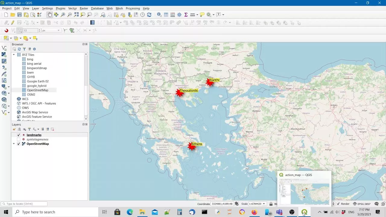 11ο Εργαστηριακό Μάθημα GIS, 20-Μαι-2021, Τμήμα Μηχανικών Περιβάλλοντος - Δ.Π.Θ. 00:00:25 - Νέο πρότζεκτ και Save as action_map.qgz 00:01:46 - Ορισμός CRS 00:03:11 - Λήψη των συντεταγμένων (Ρολόι Ξάνθης) 00:06:19 - Αποθήκευση συντεταγμένων σε αρχείο txt 00:08:40 - Λήψη νέων συντεταγμένων (Λευκός Πύργος) 00:09:32 - Αποθήκευση νέων συντεταγμένων στο αρχείο txt 00:10:52 - Λήψη νέων συντεταγμένων (Ακρόπολη) 00:13:25 - Δημιουργία διανυσματικού επιπέδου σημειακών δεδομένων μέσω του Add Delimited Text Layer 00:14:35 - Παραμετροποίηση Data Source Manager | Delimited Text 00:22:43 - Δημιουργία αντίγραφου ως ESRI shapefile 00:24:46 - Τροποποίηση συμβολογίας σημειακών δεδομένων 00:26:15 - Εμφάνιση και τροποποίηση ετικετών των σημειακών δεδομένων 00:27:31 - Επεξήγηση δράσεων (Actions) 00:29:35 - Προσθήκη νέας στήλης στον πίνακα χαρακτηριστικών 00:31:50 - Λήψη και αρχειοθέτηση φωτογραφιών 00:36:28 - Αντιγραφεί και επικόλληση διεύθυνσης φωτογραφιών στην νέα στήλη 00:39:50 - Προσθήκη, παραμετροποίηση και οριστικοποίηση 1ης δράσης 00:44:09 - Ενεργοποίηση 1ης δράσης 00:47:27 - Προσθήκη URL σε νέα στήλη στον πίνακα χαρακτηριστικών 00:51:11 - Προσθήκη, παραμετροποίηση και οριστικοποίηση 2ης δράσης 00:52:44 - Ενεργοποίηση 2ης δράσης