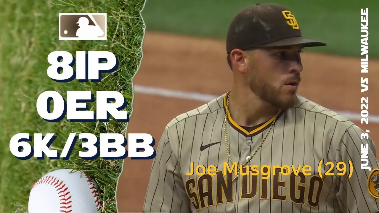 Musgrove's control wasn't there ( 1 wild pitch, 1 hit by pitch, 3 walks ) but he allowed only one hit and ended up throwing 8 scoreless innings and earned the win over Milwaukee.