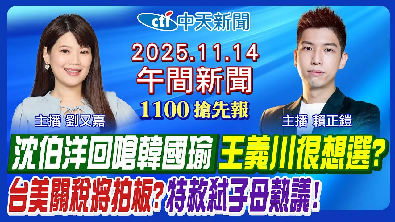 📣2025超級同學會報名連結👉 https://supr.link/fZMiy 📣支持監督的力量,請加入中天電視會員👉https://reurl.cc/pgZL9d 🔥2025捍衛新聞&言論自由💪請加入中天新聞志工隊👉https://www.surveycake.com/s/Z6YbN ✨專屬優惠價請輸入代碼【cti888】✨ 【雙11囤健康專區】什麼都能省但健康不能省:https://www.hurrybuy.com/pages/2025-1111sale 【雙11保養抗老】買KS精華霜換季抗老:https://www.hurrybuy.com/products/a001-60-003 【雙11幫助入睡】買益生菌享千元好禮:https://www.hurrybuy.com/pages/superstation 【雙11活力膠原】買膠原蛋白6送1:https://www.hurrybuy.com/products/b003-20or28-001 【雙11乳鐵蛋白】買膠乳鐵蛋白加送15天:https://www.hurrybuy.com/products/b006-20-014 【雙11防曬抗老】KS高防曬凝露65折:https://www.hurrybuy.com/products/a001-60-002 【雙11超強補水】KS蘆薈高保濕65折:https://www.hurrybuy.com/products/a001-60-001 【雙11最夯掛繩】手機隨身88折:https://www.hurrybuy.com/promotions/68f7521d530a22000cd8f6f7 【雙11精神滿滿】行動咖啡館不打烊:https://www.hurrybuy.com/products/b003-13-113or14-002 【保暖親膚】保暖落肩帽T買多優惠:https://www.hurrybuy.com/products/a001-32-011 【主播美照】主播美照一次收藏:https://www.hurrybuy.com/products/a001-43-031 【安心防護】旺旺水神專區:https://www.hurrybuy.com/pages/water-god-cate 【中天精神】KEEP FIGHTING中天文創:https://www.hurrybuy.com/pages/cti-creative-industries-category 【酥脆挑豆】旺旺挑豆四款口味一次購:https://www.hurrybuy.com/products/b003-13-110 【絕對涮嘴】旺旺嚼代爽椒組合包:https://www.hurrybuy.com/products/ww-074 💵線上贊助中天👉https://payment.ecpay.com.tw/Broadcaster/Donate/7045B72DEA4078C02216B927B8EC6368 (綠界金流/可用信用卡、ATM) 💵直接贊助中天👉彰化銀行台北分行:009-5012帳號:50128688988600戶名:中天電視股份有限公司 🏧ATM:CHANG HWA COMMERCIAL BANK TAIPEI BRANCH(CCBCTWTP501) 🏦A/C NO:50128688988600 A/C NAME:CTI TELEVISION INCORPORATION ⚠️未經著作權人同意,勿將內容用於商業性質之分享、連結。 ⚠️未經授權,嚴禁複製和用於人工智慧開發及利用。 ⚠️如有任何營業使用,必須事先取得書面同意。 【中天聊天室規範】歡迎留言互動,請尊重各自立場、理性發言,遵守本聊天室規範,違規者一經發現,將遭刪言或封鎖。〈管理員有權隨時修正規定〉 🚫禁止使用不雅、挑釁、謾罵、歧視、仇恨等言詞 🚫禁止發表危害公共安全等涉及犯罪言論 🚫禁止散布不實訊息 🚫禁止傳送鼓勵博弈訊息 🚫禁止傳送色情服務訊息 🚫禁止任何形式洗版 🚫禁止騷擾管理員與其他使用者 🎵YouTube音樂庫: https://www.youtube.com/channel/UCorqI2EE1avwlTCekjfi0LQ?sub_confirmation=1