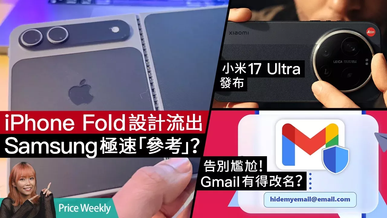 又到一集 PriceWeekly!聖誕剛過,新年將至,科技界已經急不及待為 2026 年揭開序幕! 今集焦點,絕對是小米年度拍攝鉅作 — 小米 17 Ultra 正式發布!採用全新 1 吋 CMOS,更有 75-100mm 連續光學變焦,Leica 特別版甚至加入了超有型的機械變焦環!另一邊,Honor Win 遊戲手機規格同樣驚人,破天荒搭載 10000mAh 超大電池和內置散熱風扇! 傳聞方面,首部 iPhone 摺機的 CAD 設計圖流出,獨特的螢幕比例會是未來趨勢嗎?同時,Gmail 終於有望修改用了十幾年的尷尬 Email 地址?馬上收看今集 PriceWeekly,為你送上最新最快的科技資訊! 00:00 影片開始 00:13 小米 17 Ultra 正式發布!年度拍攝鉅作 03:06 Honor Win 遊戲手機!10000mAh 電量配內置風扇 05:00 iPhone Fold 設計流出、傳 Samsung 極速採用同一風格? 06:32 iPhone Air 2 計劃重啟?傳聞將加鏡頭降價 07:24 尿袋新規例!內地強制 3C 認證加入追溯 QR Code 08:23 港鐵新例!2026 年起禁帶電動滑板車、風火輪 09:28 Gmail 用戶福音!終於可以改 Email 地址? 10:45 年尾騙案注意!HKCERT 警示假冒購物網站 ------------------------ 監製:Aaron 主持:Flora https://www.facebook.com/unsupportedbrowser 攝影:Dylan 剪接:Dylan 平面:CK ------------------------- Social Network: FB Page: https://www.facebook.com/unsupportedbrowser IG: https://www.facebook.com/unsupportedbrowser Price網站: https://www.price.com.hk/ Price網購: https://www.price.com.hk/ec-mainpage.php