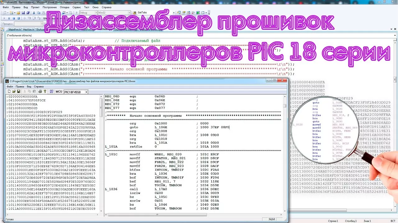 В этом видео разберем принцип работы дизассемблера прошивок микроконтроллеров 18 серии, а также узнаем назначение каждого бита для всех используемых инструкций. Ссылка на проект: https://drive.google.com/file/d/1XWtnL6baqNCKGqCcBTd-ml4w7yoDwhax/view?usp=drive_link Тайм коды: 00:11 – Пролог. 02:38 – и 10:56 – Подключение или добавление внешних файлов inc для нужного микроконтроллера. 08:05 – Основной алгоритм дизассемблера. 14:48 – Обзор и состав инструкций. 23:42 – Получение имен и флагов регистров специального назначения, и генерация имен регистров общего назначения. 28:15 – Расшифровка User ID, Конфигурации и EEPROM. 33:01 – Расстановка меток переходов. 34:47 – Обязательная проверка выходного файла с оригинальным, и возможные недочеты.