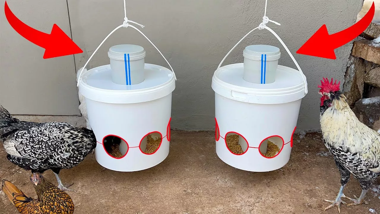 Необычные идеи | Практичное изготовление кормушки для кур из ПВХ труб и ведер