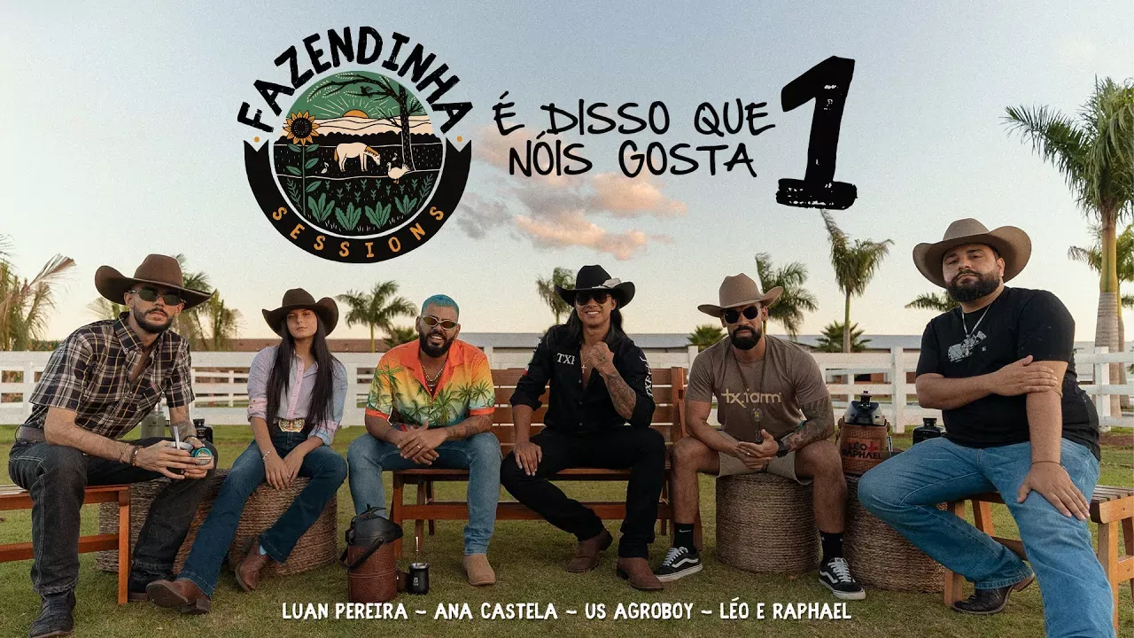 Ouça nos apps de música: https://onerpm.link/fazendinha1 Siga-nos no Instagram: Fazendinha Sessions: https://www.instagram.com/fazendinhasessionsoficial Ana Castela: https://www.instagram.com/anacastelacantora Luan Pereira: https://www.instagram.com/luanpereiracantor Us Agroboy: https://www.instagram.com/usagroboy/ Léo & Raphael: https://www.instagram.com/leoeraphael Ficha Técnica Produção de vídeo Inraw Filmes @inrawfilmes Direção de vídeo: Fábio Rojas Direção de Fotografia: Chris no Beat Produção musical: Eduardo Godoy Makeup: Ana Giorgino Locação: Haras SB Horse @haras_sbhorse Produção Executiva : Jota Lennon Fazendinha Sessions #1 É disso que nóis gosta Compositores: Jota Lennon/ Rodolfo Alessi (Letra) - Ana Castela - Eu já falei vou repetir, nóis é da roça, bebê E se bater de frente os playboyzinho vai sofrer Final de semana nóis da poeira Fim de semana nóis aciona as boiadeiras Coloca chapéu e fivela, poderosa é elas Quando chega as moça do agro a cena é toda delas De hilux zera, pecuarista é ela Com o som no talo e as amigas ouvindo Ana Castela Ah, ah, ah, ah, Boiadeira - Luan Pereira - Iê Iê Será que seu pai quer me conhecer? Porque eu sou do mato Eu sou meio largado Só que tem umas paradas que só eu que faço Eu sou bom de beijo igual eu sou bom de laço Cola no cowboy que eu faço um regaço Pode ser na cama ou na 4x4 Cola no cowboy que eu faço um regaço Hoje eu sou seu fazendeiro e vou te dar trabalho - Us Agroboy - Falando em emprego minha munheca já tá cansada de assinar Carteira de trabalho, nóis dá trabalho no Paraná E o agro como é que tá? Não para, não para, não para, não para Vinte e poucos anos, vinte e tantas ligações perdidas A gerente da Sicredi querendo ser minha amiga Quem é esse agroboy que tem mais de uma milha É eu, é claro que é eu Agora todas elas quer ser mãe de um filho meu É eu, é claro que é eu Agora olha na minha cara pelada e fala que a roça não venceu - Léo e Raphael - Falou que gosta aqui da roça, quer ir comigo pra lida Agradou d aminha prosa, dialeto caipira Ela bebe cerveja, dá tapa na mesa, adora ouvir as modona A boiada estourou, os menino apaixonou e como é que não se apaixona Não é a toa que PIB começa com P (pecuária) Sertanejo começa com S S de soja, sempre ser foda e que se foda quem não gosta de moda É disso que nóis gosta Como é que não xona na roça É disso que nóis gosta Nóis é novo, mas sabe das moda É disso que nóis gosta Como é que não xona na roça É disso que nóis gosta Nóis é novo, mas sabe das moda