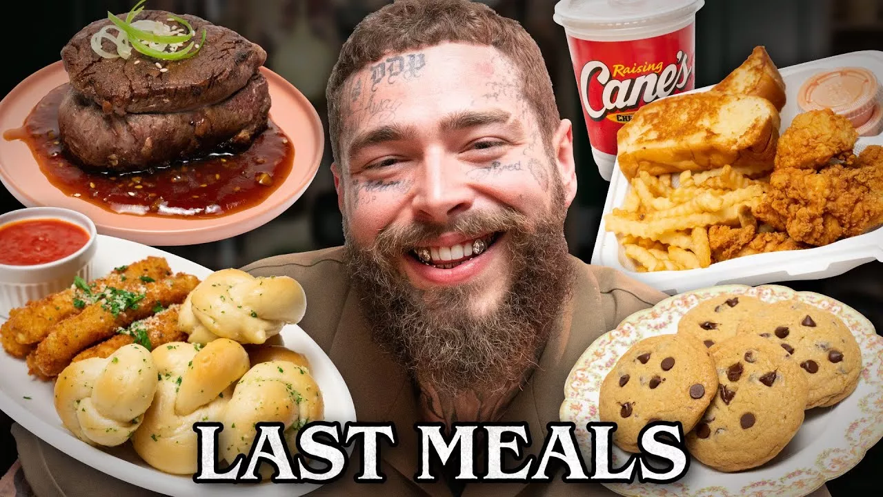 Today, Josh is cooking Post Malone's last meal. Stream Post Malone's new album, Austin, out on July 26! Subscribe to Mythical Kitchen: https://www.youtube.com/mythicalkitchen?sub_confirmation=1 Submit your Dreams Become Food photos here: https://accounts.google.com/v3/signin/identifier?continue=https%3A%2F%2Fdocs.google.com%2Fforms%2Fd%2Fe%2F1FAIpQLScGp3Sw3mZHnCO8D_ldZCM9_aN1DCtMO-L_rYtR3Fxe_BEtxw%2Fviewform%3Fusp%3Dsend_form&dsh=S1778652669%3A1768767172545276&followup=https%3A%2F%2Fdocs.google.com%2Fforms%2Fd%2Fe%2F1FAIpQLScGp3Sw3mZHnCO8D_ldZCM9_aN1DCtMO-L_rYtR3Fxe_BEtxw%2Fviewform%3Fusp%3Dsend_form&ifkv=AXbMIuBhlfAjoHiIHyU38RFWZZBGVr3OfBTAkvaGFGdcsislUc1FYiBJMUJ0EHKmBJJpv9hb0NtNDA<mpl=forms&osid=1&passive=1209600&service=wise&flowName=WebLiteSignIn&flowEntry=ServiceLogin Check out our podcast, A Hot Dog Is A Sandwich! Apple Podcasts: https://podcasts.apple.com/us/podcast/a-hot-dog-is-a-sandwich/id1500763931 Spotify: https://open.spotify.com/show/2i5anybdkLktC1ie6Cmhni Click the bell icon so you'll know when we add a new video! Want more Mythical Kitchen? Check out these playlists: Fancy Fast Food - https://www.youtube.com/playlist?list=PLW8XZTagL0oJhk71Ip3rIzHOFY3Edw2pw Snack Smash - https://www.youtube.com/playlist?list=PLW8XZTagL0oKYv5beEZpH5hP8aA5ahGKQ Food Fears - https://www.youtube.com/playlist?list=PLW8XZTagL0oK6vh1N6DOYcdWzGyuAxjtN Food Feats - https://www.youtube.com/playlist?list=PLW8XZTagL0oJI4IG7pZ-y792AHI4vIbWD Pick up official Mythical Kitchen merch at https://mythical.com//collections/mythical-kitchen Check out Sporked, Mythical's new website dedicated to helping you find the best food on the shelves! - https://sporked.com/ Join the Mythical Society: https://www.mythicalsociety.com/ Follow Mythical Kitchen: Instagram: https://www.facebook.com/unsupportedbrowser Facebook: https://www.facebook.com/unsupportedbrowser Mythical Chef Josh's Instagram: https://www.facebook.com/unsupportedbrowser Follow Mythical: Instagram: https://www.facebook.com/unsupportedbrowser Facebook: https://www.facebook.com/unsupportedbrowser Twitter: https://twitter.com/mythical Website: https://mythical.com Check Out Our Other Mythical Channels: Good Mythical Morning: https://www.youtube.com/goodmythicalmorning Rhett & Link: https://www.youtube.com/rhettandlink Ear Biscuits: https://applepodcasts.com/earbiscuits Good Mythical MORE: https://www.youtube.com/goodmythicalmore Want to send us something? https://mythical.com/contact In the spirit of minimizing food waste associated with the filming of this series, Mythical is donating to the Hollywood Food Coalition ( https://hofoco.org/ ) who provide daily, nourishing meals to underserved communities in the Los Angeles area. 0:00 Post's Last Meal Menu 0:29 Intro 0:51 The Genie Contract 1:26 How Often Do You Think About Death? 1:57 1st Course - Raising Cane's, Mozz Sticks, & Garlic Knots 2:38 Rockstar Riders 3:21 Wanting to Be 4-Years Old 4:22 Chick-fi-La has Secret Chicken Parm 4:40 Are People Ultimately Good or Bad? 5:58 How Does the World End? 7:14 Post's Apocalyptic Bunker 8:06 How Has Being a Father Changed You? 9:10 Show Me the Marinara 9:40 2nd Course - Pizza and Chicken Parm 11:03 Josh is Mommy 11:37 Pizza Hut Nostalgia 12:16 Paranoia 14:37 Playing Diablo IV 15:10 3rd Course - Filet Mignon, Ramen, Maison No9 15:52 Learning New Words 17:00 Adapting to the Mormon Way of Speaking 17:52 Wine Tasting 19:08 The New Album 21:50 Acid Polka 22:28 The Part Where They Take Their Shirts Off 23:43 What Do You Think Happens When You Die? 25:21 Family 26:49 4th Course - Chocolate Chip Cookies & Frosted Flakes 27:14 Milking Technique 28:27 What are Ghosts? 31:21 Lightning Round - Who Would You Share Your Last Meal With? 31:44 Which One of The TMNT Would You Share Your Last Meal With? 32:05 What Guitar Hero Song Can You Play With No Mistakes? 32:20 What Song Do You Want Played at Your Funeral? 32:49 What's Your Biggest Fear? 33:18 Are You Happy? 33:27 Post's Last Words Closed Captioning provided by Rev