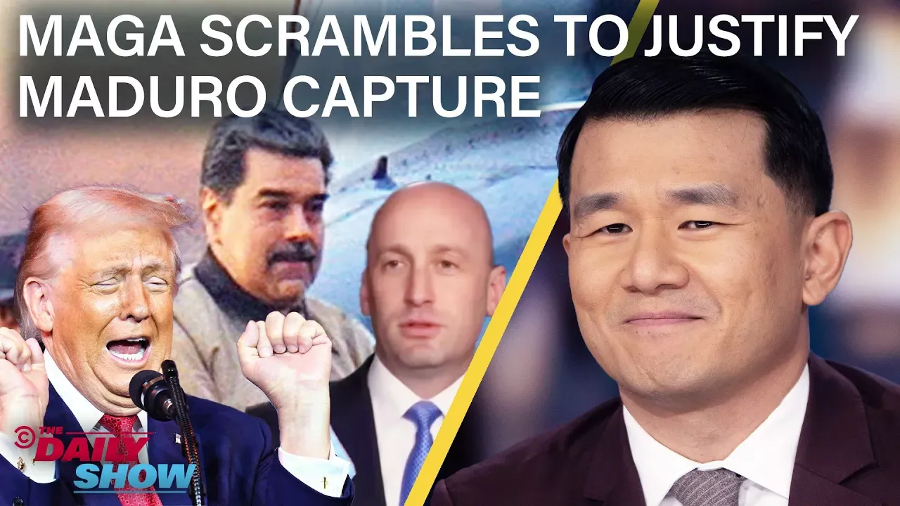 Ronny Chieng unpacks former Venezuelan President Nicolas Maduro’s abduction and first day in court, where he and his wife got some good couples time pleading not guilty to cocaine trafficking charges. Meanwhile, MAGA attempts to justify Trump’s intervention by downplaying the episode, citing Christianity, and downright playing the bully. 0:00 - Ronny Chieng's TDS Welcome 0:29 - Venezuelan President Nicolas Maduro Faces His First Day in Court 2:43 - MAGA Comments on the Geopolitical Implications of the Intervention 6:31 - Stephen Miller Explains Trump's Reasoning for Invading Venezuela Subscribe to The Daily Show: https://www.youtube.com/channel/UCwWhs_6x42TyRM4Wstoq8HA/?sub_confirmation=1 Follow The Daily Show: Twitter: https://twitter.com/TheDailyShow Facebook: https://www.facebook.com/unsupportedbrowser Instagram: https://www.facebook.com/unsupportedbrowser Stream full episodes of The Daily Show on Paramount+: https://www.paramountplus.com/intl/ Follow Comedy Central: Twitter: https://twitter.com/ComedyCentral Facebook: https://www.facebook.com/unsupportedbrowser Instagram: https://www.facebook.com/unsupportedbrowser About The Daily Show: Jon Stewart and The Best F**king News Team host The Daily Show, an Emmy and Peabody Award-winning program analyzing the biggest stories in news, politics, and culture through a sharp, satirical lens. The Daily Show redefined the late night show category on TV and, with an audience of over 51M across social media platforms, has become a launching pad for some of the biggest stars in entertainment. The Daily Show airs weeknights at 11/10c on Comedy Central.