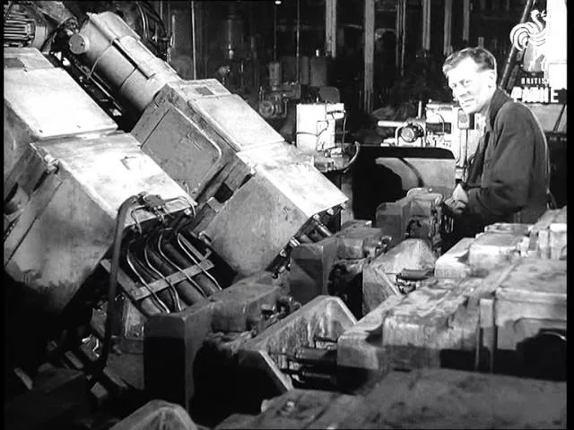 A group of school children watch a model of a wheel turning driven by a sort of water pump that drives a hammer action. Primitive water lifting devices for irrigation along the banks of the Nile. A graphic of a large Egyptian statue being pulled along by slaves using wooden rollers on a track. An oxen walks in a circle turning a large wheel that is connected to another wheel raising water for irrigation. A clock that runs for years driven by a ball rolling over a tilting plate. Cut to a large industrial production line at British Motor Corporation showing the production of engine parts and their assemble. At the head of the line an operator clamps an engine block into a fixture that will automatically pass it from one machine to another as the engine is machined, drilled and bored to completion. Each step of the process is shown in great detail until the whole engine is completed and then the gear box case is added. No detail is spared and there are natural sound effects for every moment of the operation. The narrator tells us that "these wonderful machines are a far cry from the rollers the Egyptians used and yet in practice they are doing the same thing, lessening the load on man, easing his work and at the same time increasing his productivity. This method of production has been called "Automation". For similar shots to these, but in full colour see "Magic in Metal" *PM2299*. This is also produced by B.M.C. FILM ID:2299.06 A VIDEO FROM BRITISH PATHÉ. EXPLORE OUR ONLINE CHANNEL, BRITISH PATHÉ TV. IT'S FULL OF GREAT DOCUMENTARIES, FASCINATING INTERVIEWS, AND CLASSIC MOVIES. https://www.britishpathe.tv/ FOR LICENSING ENQUIRIES VISIT https://www.britishpathe.com/ British Pathé also represents the Reuters historical collection, which includes more than 136,000 items from the news agencies Gaumont Graphic (1910-1932), Empire News Bulletin (1926-1930), British Paramount (1931-1957), and Gaumont British (1934-1959), as well as Visnews content from 1957 to the end of 1984. All footage can be viewed on the British Pathé website. https://www.britishpathe.com/