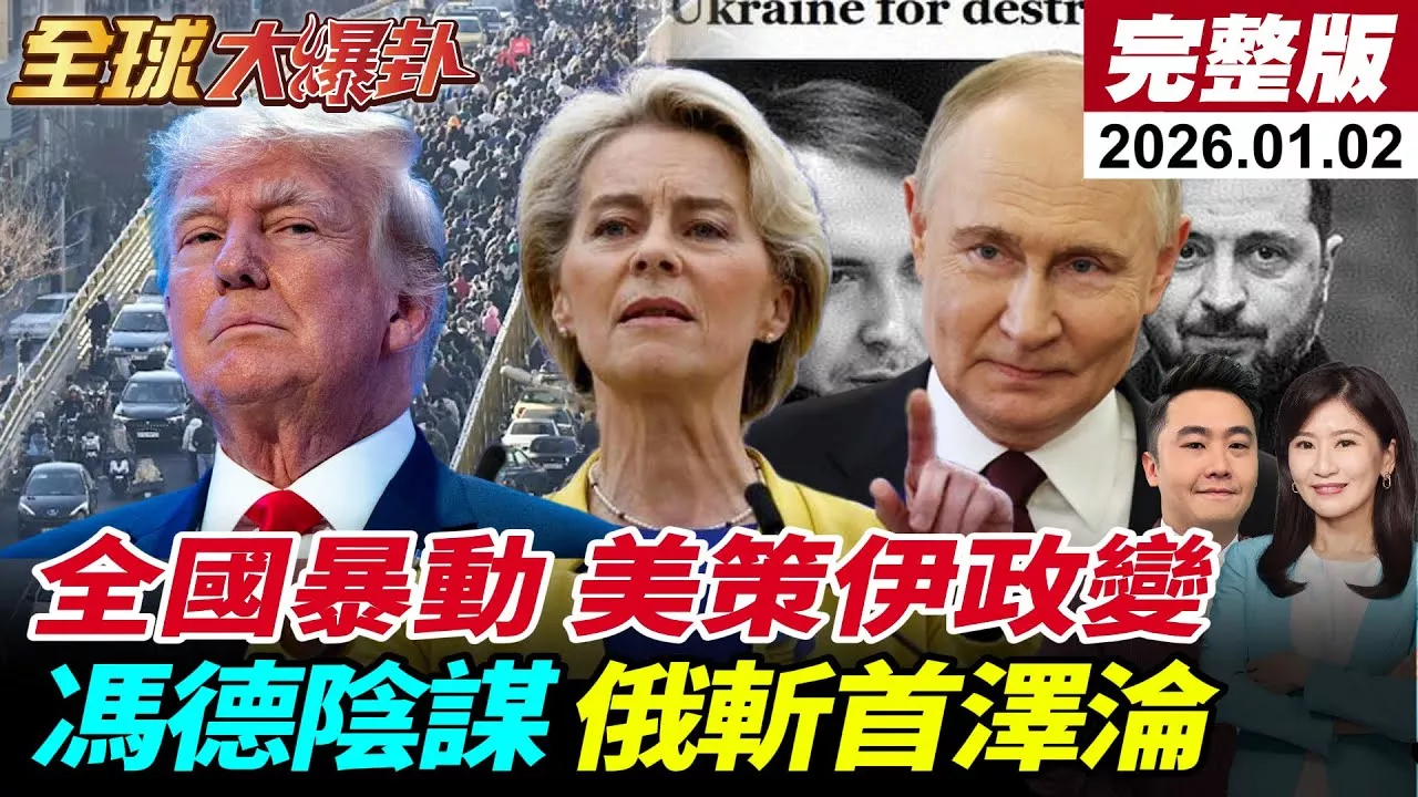 #周錫瑋 #蔡正元 #帥化民 #伊朗 #德黑蘭 #暴動 #通膨 #以色列 #納坦雅胡 #內坦尼亞胡 #美國 #川普 #特朗普 #核武 #基建 #中國 #北京 #習近平 #高鐵 #烏魯木齊 #賴清德 #國台辦 #陳彬華 #元旦 #兩岸 #台海 #台獨 #青鳥 #國防 #預算 #國民黨 #藍白 #解放军 #解放軍 #共軍 #海巡署 #管碧玲 #歐盟 #馮德萊恩 #碳邊境稅 #環保 #關稅 #燃油車 #電動車 #比亞迪 #特斯拉 #俄羅斯 #普京 #普丁 #官邸 #烏克蘭 #泽连斯基 #澤倫斯基 #斬首 #紅軍城 #和平計畫 #北約 #NATO #辮子妹 訂閱《全球大視野》,按讚、分享,開啟小鈴鐺,鎖定「全球大爆卦」帶來的最新國際快訊與深度分析! 主持人: #張卉林 #謝其恩 #全球大爆卦 周一至周五 16:00-18:00 🔶搶救小編推薦碼 下載中天新聞網APP!推薦代碼任選一位!https://deep.ctinews.com/app-cticx0eLR 責任編輯:住海編 cti852 魚編 cti997 📣支持優質國際新聞,請加入全球大視野會員👉 https://pse.is/3q6hhd ☀️《全球大視野》報導國際新聞事件,第一手現場直播,深受全球華人信賴! 《全球大視野》節目 每週一至五23:00首播 《全球大爆卦》節目 每週一至五16:00首播 《前進戰略高地》節目 每週六21:00首播 《國際直球對決》節目 每週日21:00首播 ✨專屬優惠價請輸入代碼【cti888】✨ 【迎新健康優惠】滿6288送688:https://pse.is/AR516c 【迎新保養抗老】買KS買1送1↘下殺:https://pse.is/AR522c 【迎新幫助入睡】買益生菌享順暢好眠:https://pse.is/AR518c 【迎新活力膠原】買膠原蛋白美顏行動UP:https://pse.is/AR520c 【迎新乳鐵蛋白】買膠乳鐵蛋白加強防護力:https://pse.is/AR519c 【迎新抗光抗老】KS抗光清爽高防曬凝露:https://pse.is/AR525c 【迎新入冬保濕】KS蘆薈保濕舒緩凝膠:https://pse.is/AR524c 【迎新主播桌曆】365天挺你愛的主播:https://pse.is/AR491c 【迎新主播SHOP照】主播版文創相框最給力:https://pse.is/AR513c 【迎新主播桌曆+SHOP】主播美照一次收藏:https://pse.is/AR517c 【最夯掛繩】外出手機隨身超值優惠:https://bit.ly/AR300c1 【保暖親膚】保暖落肩帽T買多優惠:https://bit.ly/AR306c 【精神滿滿】隨身咖啡錠精神超給力:https://pse.is/AR378c 【安心防護】旺旺水神專區:https://bit.ly/AR274c 【中天精神】KEEP FIGHTING中天文創:https://pse.is/AR355c 【酥脆挑豆】旺旺挑豆四款口味一次購:https://pse.is/AR323c 【絕對涮嘴】旺旺嚼代爽椒組合包:https://bit.ly/AR276c 💵線上贊助中天👉https://bit.ly/ctidonate (綠界金流/可用信用卡、ATM) 💵直接贊助中天👉彰化銀行台北分行:009-5012帳號:50128688988600戶名:中天電視股份有限公司 🏧ATM:CHANG HWA COMMERCIAL BANK TAIPEI BRANCH(CCBCTWTP501) 🏦A/C NO:50128688988600 A/C NAME:CTI TELEVISION INCORPORATION ⚠️未經著作權人同意,勿將內容用於商業性質之分享、連結。 ⚠️未經授權,嚴禁複製和用於人工智慧開發及利用。 ⚠️如有任何營業使用,必須事先取得書面同意。 【大視野聊天室規範】歡迎留言互動,請尊重各自立場、理性發言,遵守本聊天室規範,違規者一經發現,將遭刪言或封鎖。〈管理員有權隨時修正規定〉 🚫禁止使用不雅、挑釁、謾罵、歧視、仇恨等言詞 🚫禁止發表危害公共安全等涉及犯罪言論 🚫禁止散布不實訊息 🚫禁止傳送鼓勵博弈訊息 🚫禁止傳送色情服務訊息 🚫禁止任何形式洗版 🚫禁止騷擾管理員與其他使用者 🎵YouTube音樂庫: https://goo.gl/Z6TsBI