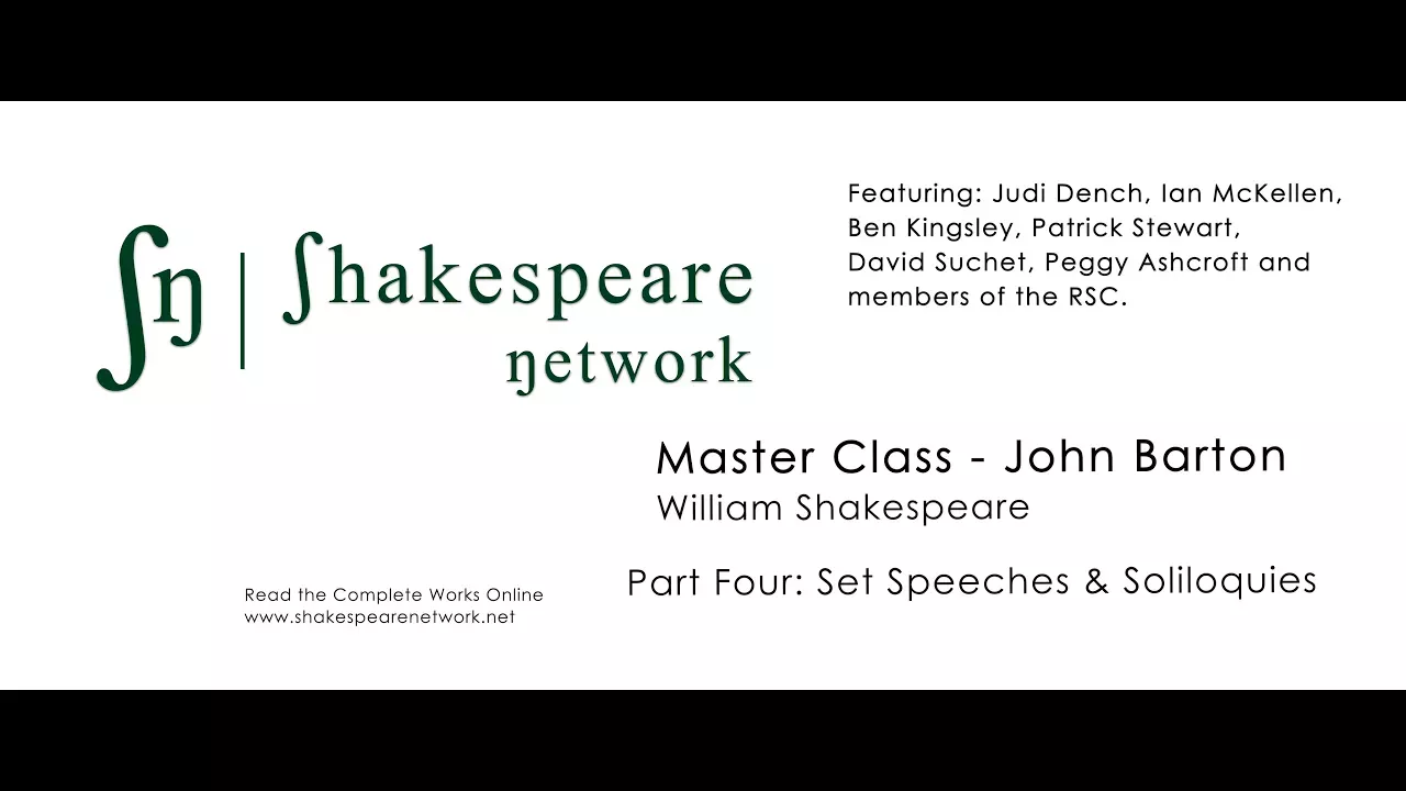 "Barton’s legacy is the most exhilarating tribute one can pay to Shakespeare." Maximianno Cobra - Shakespeare Network - Founder and Artistic Director The Royal Shakespeare Company founder John Barton holds a masterclass featuring: - CAST - JUDI DENCH IAN MCKELLEN PATRICK STEWART BEN KINGSLEY DAVID SUCHET PEGGY ASHCROFT and members of the RSC: Tony Church, Sinead Cusak, Mike Gwilym, Susan Fleetwood, Sheila Hancock, Terry Hands, Lisa Harrow, Alan Howard, Barbara Leigh-Hunt, Jane Lapotaire, Michael Pennington, Richard Pasco, Norman Rodway and Donald Sinden. Playing Shakespeare - The series features nine master classes on Shakespearean performance. First group - Objective Things: - Part One: The Two Traditions - Elizabethan and Modern Acting - Part Two: Using the Verse - Heightened and Naturalistic Verse - Part Three: Language & Character - Making the Words One's Own - Part Four: Set Speeches & Soliloquies - Taking the Audience with You Second group - Subjective Things: - Part Five: Irony & Ambiguity - Text That Isn't It Seems - Part Six: Passion & Coolness - A Question of Balance - Part Seven: Rehearsing the Text - Orsino and Viola - Part Eight: Exploring a Character - Playing Shylock - Part Nine: Poetry & Hidden Poetry - Three Kinds of Failure Please consider subscribing to our channel for More Insights: https://www.youtube.com/user/ShakespeareNetwork?sub_confirmation=1 John Bernard Adie Barton, CBE (26 November 1928 – 18 January 2018), was a British theatre director and teacher whose close association with the Royal Shakespeare Company spanned more than half a century. Co-founder of the Royal Shakespeare Company, John Barton was, with Trevor Nunn and Peter Hall, one of the legendary theatre directors whose work and acting collaborations in the mid twentieth century would effect the course of Shakespeare on stage in successive decades. His biography includes a range of landmark production through the sixties and seventies (including the 1969 Twelfth Night with Judi Dench as Viola, and the 1970 A Midsummer Night's Dream with Patrick Stewart as Oberon), and with his abilities in helping actors through workshops, his presence and influence are felt even further. This recording is for educational purposes only and is covered under Fair Use doctrine - Copyright - All rights reserved to their respective owners. Read the unabridged plays online: https://shakespearenetwork.net/works/plays _______________________________ FUNDRAISING CAMPAIGN - DONATIONS - Shakespeare Network Website and YouTube Channel: Donate with PayPal or GoFundMe today: _______________________________ Screen Adaptation - Co-Production : MISANTHROPOS – Official Website - https://www.misanthropos.net Adapted by Maximianno Cobra, from Shakespeare's "Timon of Athens", the film exposes the timeless challenge of social hypocrisy, disillusion and annihilation against the poetics of friendship, love, and beauty. _______________________________ Why Donate? Donations to Shakespeare Network help sustain free knowledge and educational programs on Shakespeare Network and our ecosystem of Shakespeare Network projects. Your contributions ensure these resources remain accessible and valuable for all. Thank you. 25% Direct support to website: Keeping the Shakespeare Network websites online is about more than just servers. It also includes ongoing engineering improvements, product development, design and research, and legal support. 25% Administration and governance: We manage funds and resources responsibly to recruit and support skilled, passionate staff who advance our communities and values. Our operating budget: Transparency is core to our organization. The Shakespeare Network develops our annual plan and operating budget through open processes, which are subject to feedback from our volunteers and Board approval. 50% Direct support to communities: Shakespeare Network projects exist thanks to the communities that create and maintain them. We strengthen these communities through grants, projects, and training programs. Contact us for further info. → ______________________________________ Shakespeare Network Educational Program: - A Companion to Shakespeare -masterclasses, reviews, reactions, Academic Studies, historical and original audio-visual content, etc. Enjoy unlimited ad-free YouTube videos with YouTube Premium. Subscribe now and watch without interruptions. [ Link to YouTube Premium - https://www.youtube.com/premium ]