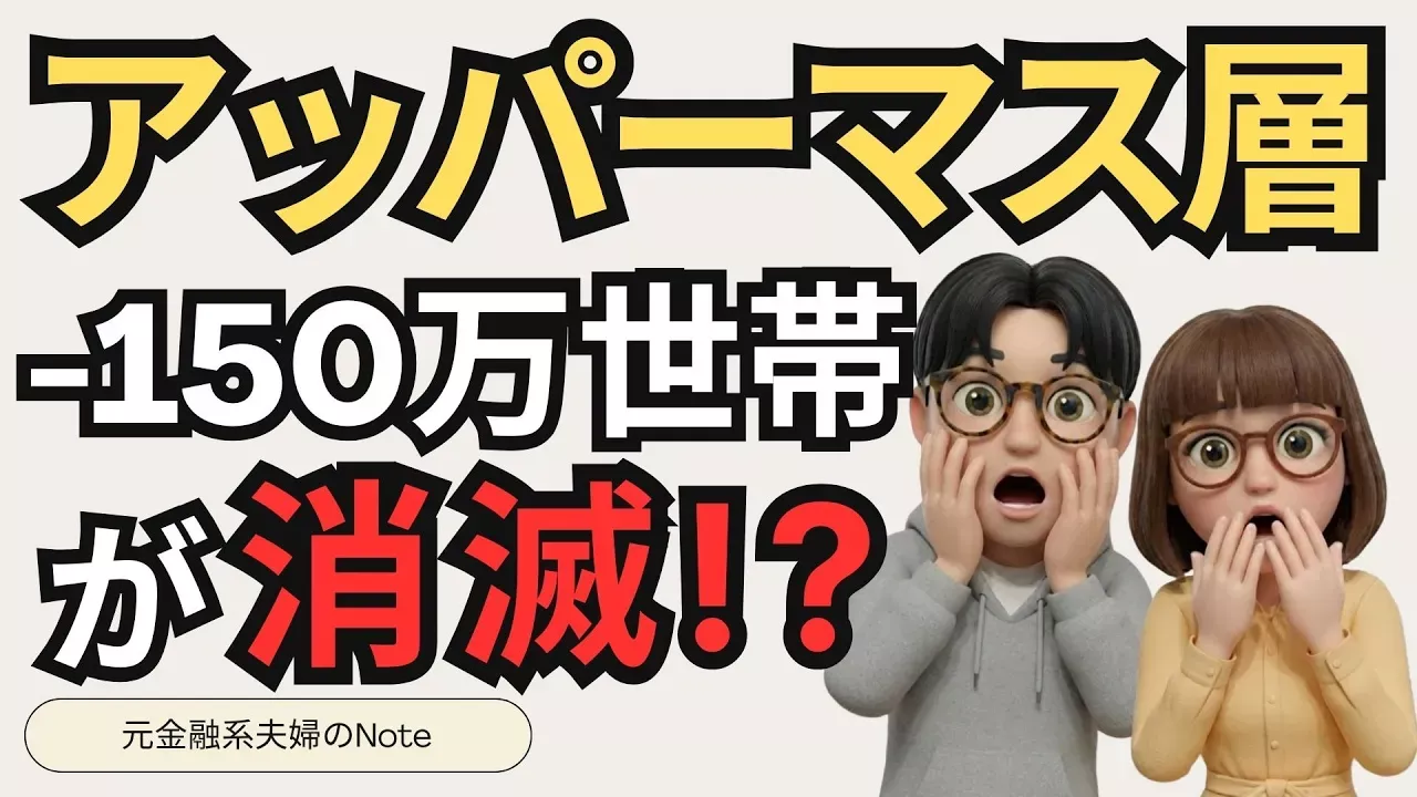 たった2年で約150万世帯のアッパーマス層が消滅しました。インフレと円安による「静かなる破産」が進行する中、あのウォーレン・バフェットが現金を過去最高レベルまで積み上げています。2026年に訪れる危機と、資産を守るための「隠し玉」銘柄について解説します。 ▼📚 もっと詳しく知りたい方へ noteで記事を公開中! 他人と比べずに自信を持って長期投資を続けるための具体的なマインドセット術や、資産を増やすための戦略を深掘りしています。 https://note.com/moto_kinyu_fufu 👇おすすめの書籍紹介 敗者のゲーム:https://www.amazon.co.jp/%E6%95%97%E8%80%85%E3%81%AE%E3%82%B2%E3%83%BC%E3%83%A0%EF%BC%BB%E5%8E%9F%E8%91%97%E7%AC%AC%EF%BC%98%E7%89%88%EF%BC%BD-%E6%97%A5%E6%9C%AC%E7%B5%8C%E6%B8%88%E6%96%B0%E8%81%9E%E5%87%BA%E7%89%88-%E3%83%81%E3%83%A3%E3%83%BC%E3%83%AB%E3%82%BA%E3%83%BB%E3%82%A8%E3%83%AA%E3%82%B9-ebook/dp/B09P4Q56W9?_encoding=UTF8&dib_tag=se&dib=eyJ2IjoiMSJ9.DkVFY9y5QwHlvSbBF7CtQVU3ZRkYCapsRxY-ubgRHG0iNnR-Z3O6O0VOA8tDUH6nc5DWi0Q-8JJiON0lhrhgRG9XoMj10o5iM6g5GnpDEOdXBX_NSg49ue0ist4blH0M_PpCPpi7hCT9PUud_CB3-ZBwXiyzGrAmk0VsH5u4W_b-vFtkFGCMQZbIfazWLcBAKfi-dcs-Ab1tb6i2wOnoPG6IWECHXyR2yzQugVVL4vN6_RuSbLoCY3Zbvq3aesxkcfSZ_3g7GS-Sokj0mIerO-gaez7cS1PnPmG7ZcxUDY4.R2rNNMLGBBm37_KP9Uki6nP1iT3Ft7hSv9nkm7fr_NU&language=ja_JP 【目次】 00:00 「普通の幸せ」終了のお知らせ 01:54 本日のメニュー 02:30 アッパーマス層が20%激減した衝撃データ 04:33 ビックマック指数で見る「円の弱さ」 06:23 バフェットが現金58兆円を作った本当の理由 09:29 2026年、会社員を襲う「ボーナスショック」とは? 10:42 生存戦略①:積立は「円安保険」 11:41 生存戦略②:生活防衛資金の新常識 12:12 生存戦略③:バフェットの隠し玉「●●株」 【関連キーワード】 アッパーマス層, 資産形成, 新NISA, S&P500, オルカン, 暴落対策, 日本株, 商社株, 伊藤忠商事, 三菱商事, バフェット太郎, リセッション, 住宅ローン, 老後2000万円問題