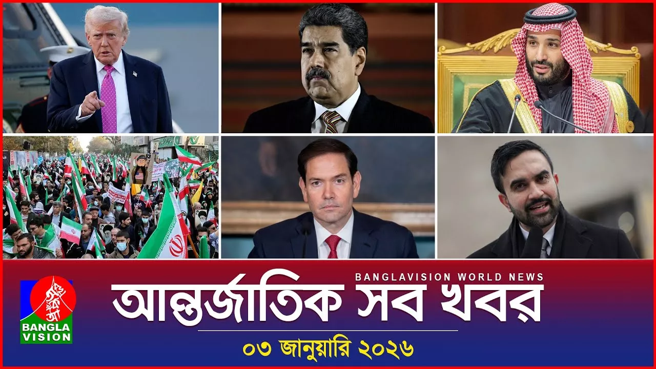 আন্তর্জাতিক সব খবর | Banglavision World News | 03 January 2026 | International News Bulletin BanglaVision is the most popular TV channel in Bangladesh, offering unbiased & authentic news and entertainment programs. Subscribe to https://www.youtube.com/@BanglaVisionNEWS to get updated about the latest Bangla News, Infotainment, Drama, Telefilm, Movie, Series, Talk Show, Bulletin, Sports News, International News, Health and Lifestyle Programs, and more. Owned by Shamol Bangla Media Limited, it commenced official broadcasts on 31 March 2006. Chief Editor & Head of News & Current Affairs: Dr. Abdul Hai Siddique Controller F&A and Head of HR & Admin Mohammad Amjad Amin Read more News: https://www.bvnews24.com/ Our Official YouTube Channels: BanglaVision: https://www.youtube.com/@banglavision BanglaVision News: https://www.youtube.com/@BanglaVisionNEWS BanglaVision Drama: https://www.youtube.com/@banglavisiondrama BanglaVision Entertainment: https://www.youtube.com/@BanglaVisionEntertainment BanglaVision Program: https://www.youtube.com/@BanglaVisionProgram BanglaVision Talk Show: https://www.youtube.com/@BanglaVisionTALKSHOW BVNEWS24: https://www.youtube.com/@THEBVNEWS24 BanglaVision North America: https://www.youtube.com/@BVNorthAmerica BanglaVision Sports: https://www.youtube.com/@banglavisionsportss 24/7 YouTube LIVE TV: BanglaVision Live: https://www.youtube.com/@banglavisionlive Our Official Facebook Pages: BanglaVision: https://www.facebook.com/unsupportedbrowser BanglaVision News: https://www.facebook.com/unsupportedbrowser BanglaVision Entertainment: https://www.facebook.com/unsupportedbrowser BVNEWS24: https://www.facebook.com/unsupportedbrowser BanglaVision North America: https://www.facebook.com/unsupportedbrowser BanglaVision World: https://www.facebook.com/unsupportedbrowser BanglaVision Sports: https://www.facebook.com/unsupportedbrowser BanglaVision Drama: https://www.facebook.com/unsupportedbrowser Other Social Media: TikTok: https://www.tiktok.com/@banglavision Twitter: https://www.twitter.com/banglavision_tv Instagram: https://www.facebook.com/unsupportedbrowser Linkedin: https://www.linkedin.com/company/banglavisiontv Download Our Mobile Apps! Android: https://play.google.com/store/apps/details?id=com.bvnews24.bvnews24 IOS: https://apps.apple.com/us/app/bvnews24 Disclaimer: BanglaVision (Shamol Bangla Media Ltd.) has the sole rights to all contents, and it does not give permission to any business entity or individual to use these contents except BanglaVision. This Channel is based on Infotainment and news. Every single piece of content is created by the BanglaVision NCA & Program team and managed by the BanglaVision Digital team. And if needed, Third-Party materials were also used with specific authorization and permission to be posted on YouTube. Fair Usage Policy: This channel may use some copyrighted materials without specific authorization of the owner, but the contents used here fall under the “Fair Use” as described in The Copyright Act 2000 Law No. 28 of the year 2000 of Bangladesh under Chapter 6, Section 36, and Chapter 13 Section 72. According to that law, allowance is made for "fair use" for purposes such as criticism, comment, news reporting, teaching, scholarship, and research. Fair use is a use permitted by copyright statutes that might otherwise be infringing. Non-profit, educational, or personal use tips the balance in favor of fair use. "Copyright Disclaimer Under Section 107 of the Copyright Act 1976, allowance is made for -fair use- for purposes such as criticism, comment, news reporting, teaching, scholarship, and research. Fair use is a use permitted by copyright statutes that might otherwise be infringing. Non-profit, educational, or personal use tips the balance in favor of fair use." BanglaVision HQ: Shamol Bangla Media Ltd. (BanglaVision) Noor Tower, 110 Bir Uttam C. R. Dutta Road, Dhaka-1205, Bangladesh. Phone: 9632030-45