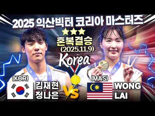 #정나은배드민턴 #김재현배드민턴 #배드민턴국가대표 #말레이시아배드민턴 #빅터코리아마스터즈 #콕까대표 안녕하세요, 콕까대표 김종하입니다! 이번 영상은 2025 익산빅터코리아 마스터즈 국제배드민턴대회 혼복 결승전 경기입니다! 배드민턴 badminton バドミントン 羽毛球 bulutangkis cầu lông แบดมินตัน бадмінтон ※혼합복식 - 결승전※ [대한민국 - 김재현 & 정나은] VS [말레이시아 - WONG & LAI] 이들의 기가막힌 게임 영상을 함께보시죠! 아울러, 블루코트 밴드에서 여러 동호인들과 정기적인 운동벙개를 통해서 소통할 예정이오니, 아래의 링크를 클릭해서 블루코트 밴드로 들어오시면 감사하겠습니다. ------------------아래주소 클릭--------------------------------- '블루코트' 밴드로 초대합니다. https://band.us/n/a2a2A0a9DeLat 밴드명을 검색해 가입할 수 있습니다. ----------------------------------------------------------------------- #김재현배드민턴 #정나은배드민턴 #배드민턴국가대표 #말레이시아배드민턴 #빅터코리아마스터즈 #콕까대표