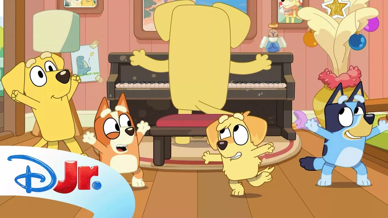 Watch the full Bluey minisode, "Christmas Cricket"! Bluey and Bingo are playing a game of backyard cricket when they hear a familiar Christmas song coming from Lucky's house. Watch the next Bluey video here: https://www.youtube.com/watch?v=5YU76jjCTD4 Watch Bluey on Disney Junior! And check out more Bluey videos here: https://www.youtube.com/playlist?list=PL2m1vjiMH_hNe9p654bXyb6cVP4cNIHQs Check out more Bluey Minisodes here: https://www.youtube.com/playlist?list=PL2m1vjiMH_hMv4ooB-NETLgMOYwjk_0bL Available on Disney Jr. and Disney+ https://www.disneyplus.com/whats-on Bluey Minisodes is a collection of funny and sweet moments featuring Bluey & Bingo. Introducing some new characters alongside fan favorites including Muffin doing an unboxing video, Bluey Minisodes is a collection of funny and sweet moments featuring Bluey & Bingo. Introducing some new characters alongside fan favorites! Dad getting a 'tattoo' and we go behind the scenes at Bluey and Bingo's dreamhouse.