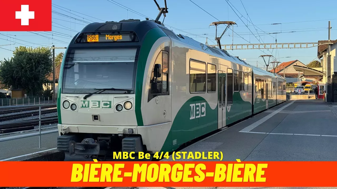 In this video you can enjoy the cab ride - train driver's view on the Bière–Apples–Morges Railway from Bière to Morges and back to Bière in 4K/60 frames per second. Climb into the driver’s cab for a relaxing journey on the charming metre-gauge Bière–Apples–Morges line, operated by Transports de la région Morges-Bière-Cossonay (MBC). This single-track railway stretches nearly 30 km, linking Morges on the shores of Lake Geneva with the foothills of the Jura at Bière. As the train departs from Bière, you travel through rolling hills, dense countryside, and peaceful villages such as Apples and Le Marais. The gradient remains moderate (max ~ 3.57%) throughout the route. The line is electrified (15 kV / 16.7 Hz AC) and features classic Stadler Be 4/4 trains, evoking a nostalgic charm. Beyond its scenic value, the railway is part of the “Voie des Sens” concept — combining nature, local craftsmanship, and gastronomy. On special themed rides, passengers can enjoy gourmet experiences aboard, such as the “Train of Flavors,” cheesemaker’s train, wine tastings, and brunch journeys. You can find more information about: https://www.mbc.ch/lines Sit Back, Relax, and Enjoy watching this full-length scenic rail trip video in 4K quality. This Relaxing Video is best watched on a 4K big-screen TV sitting on a cosy sofa or armchair. All my videos are copyrighted. Contact me for more information. Please note that the speed data is GPS-based and can be very inaccurate. It might indicate a different speed than the actual speed. 🛑 Website: https://www.railrelaxation.com/ If you want to help make this channel even better, please consider. 🛑 https://www.paypal.com/donate/?hosted_button_id=NLDVCNXRBVRC8 🛑 Love trains and trainspotting? Check out my other channel dedicated to trainspotting adventures! Here is the link: https://www.youtube.com/@railtrainspotting Route Info: ◎ Drive Date: Octobre 2025 ◎ Start: Bière ◎ End: Bière ◎ Train: MBC Be 4/4 (STADLER) ◎ Drive Time: 54:32 0:00 Preview 01:05 Bière 04:46 Ballens 07:08 Ballens-Froideville 10:40 Apples 12:46 Reverolle 16:15 Yens 18:57 Bussy-Chardonney 21:04 Le Marais 22:38 Vufflens-le-Château 24:39 Chigny 26:35 Prélionne 27:44 La Gottaz 29:11 Morges 31:15 La Gottaz 32:23 Prélionne 34:20 Chigny 35:58 Vufflens-le-Château 37:11 Le Marais 38:20 Bussy-Chardonney 40:15 Yens 43:30 Reverolle 44:57 Apples 48:43 Ballens-Froideville 50:03 Ballens 54:03 Bière Thanks for watching and have a nice day! #CabRide#TrainJourney#RailRelaxation#MBC#Bière–Apples–MorgesRailway