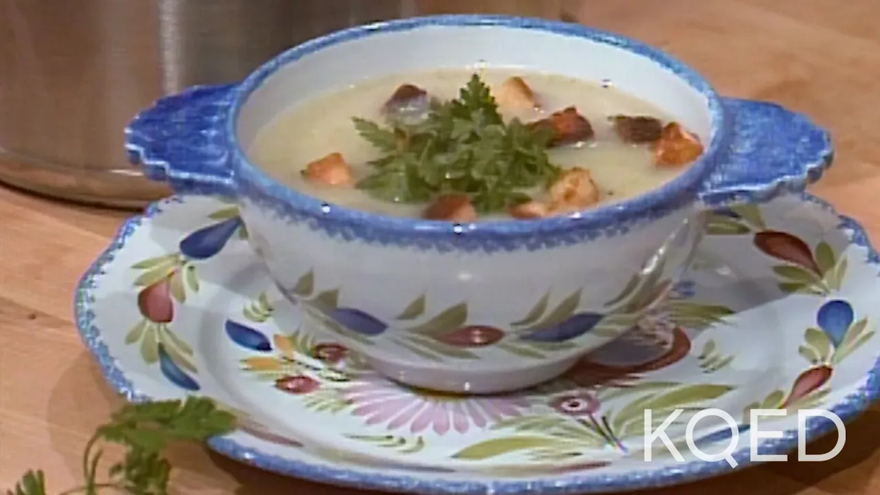 Fall weather is just around the corner. What better way to celebrate than with Jacques Pépin's garlic soup with leek and potato? Jacques shares his secret for peeling garlic while recreating his mother's soup recipe. Garnish with chervil or other herbs. What you'll need: 1 garlic bulb (about 10-12 cloves), 4 potatoes, 1/2 onion, leek stalk, 2 cups of chicken stock, 2 cups of water, peanut oil, salt, milk or cream, croutons, olive oil, chervil Today's Gourmet with Jacques Pépin: Garlic Soup with Leek and Potato Segment from Season 1, Episode 1, 1991. Subscribe to watch a new Jacques Pépin video every Wednesday: https://www.youtube.com/kqed?sub_conf...... About Today's Gourmet with Jacques Pépin: Today’s Gourmet aired on KQED 9 for 3 seasons, spanning 1991 – 1993. The series showcased Jacques' culinary techniques, mouthwatering recipes, and sensibilities as a chef. Episodes include recipes such as gnocchi maison and visits from special guests including the godmother of the organic food movement, Alice Waters. The Jacques Pépin Foundation is dedicated to enriching lives and strengthening communities through the power of culinary education. https://jp.foundation/%E2%80%8B%E2%80%8B%E2%80%8B Subscribe to @KQEDFood to watch more food videos.