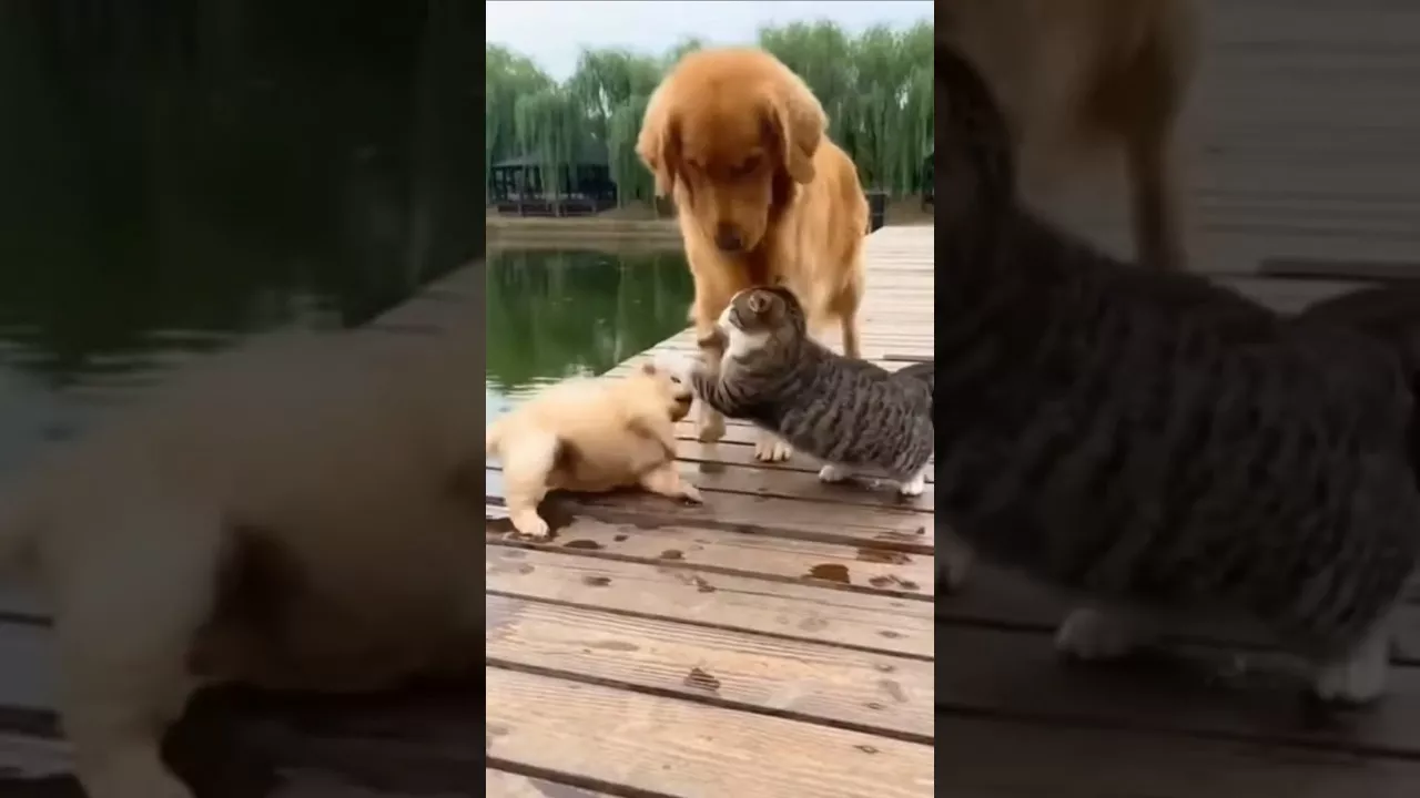 A tabby cat smacks a Golden Retriever puppy, and the Golden Retriever mom jumps in to protect her baby! In the chaos, the cat ends up falling into the water and panicking. A wild but funny moment between a dog and a cat — no animals were harmed. #cat #dog #tabbycat #goldenretriever #puppy #funnyanimals #petshorts #animalshorts #catvsdog #cutepets #고양이 #강아지 #고등어고양이 #골든리트리버 #아기강아지 #동물영상 #반려동물 #쇼츠 #猫 #犬 #キジトラ #ゴールデンレトリバー #子犬 #動物動画 #ペット #ショート動画 #katze #hund #welpe #haustiere #tiervideos #shorts #lustigetiere #gato #perro #gatoatigrado #cachorro #mascotas #videosdeanimales #shorts #chat #chien #chiot #animaux #petitsanimaux #videosanimaux #shorts