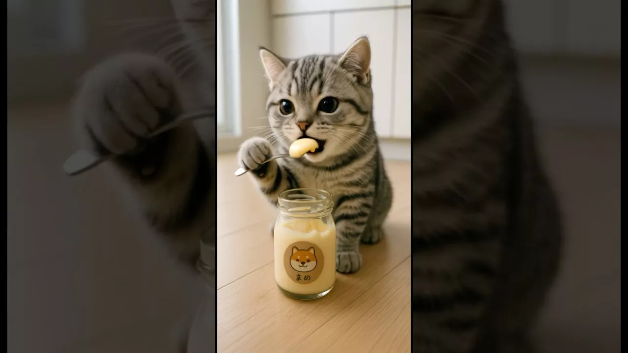 まるがまめの🍮を食べちゃった!それを知ってまめは落ち込んでしまいます… #柴犬 #赤ちゃん柴 #わんこ #子猫 #猫 #癒し #shiba #shibainu #cat #kitty #ai