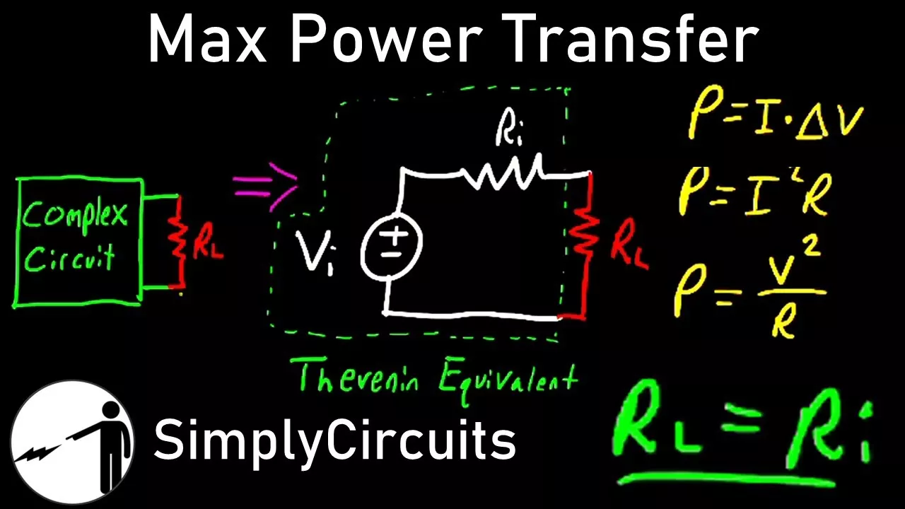 In this electrical engineering tutorial, I derive the maximum power transfer equation for a circuit. Using the Thevenin circuit model, the equation for the maximum power can be found by optimizing the power equation for the load resistor. For more on how to find the Thevenin equivalent circuit: https://youtu.be/Zy6n3ZOfwsw