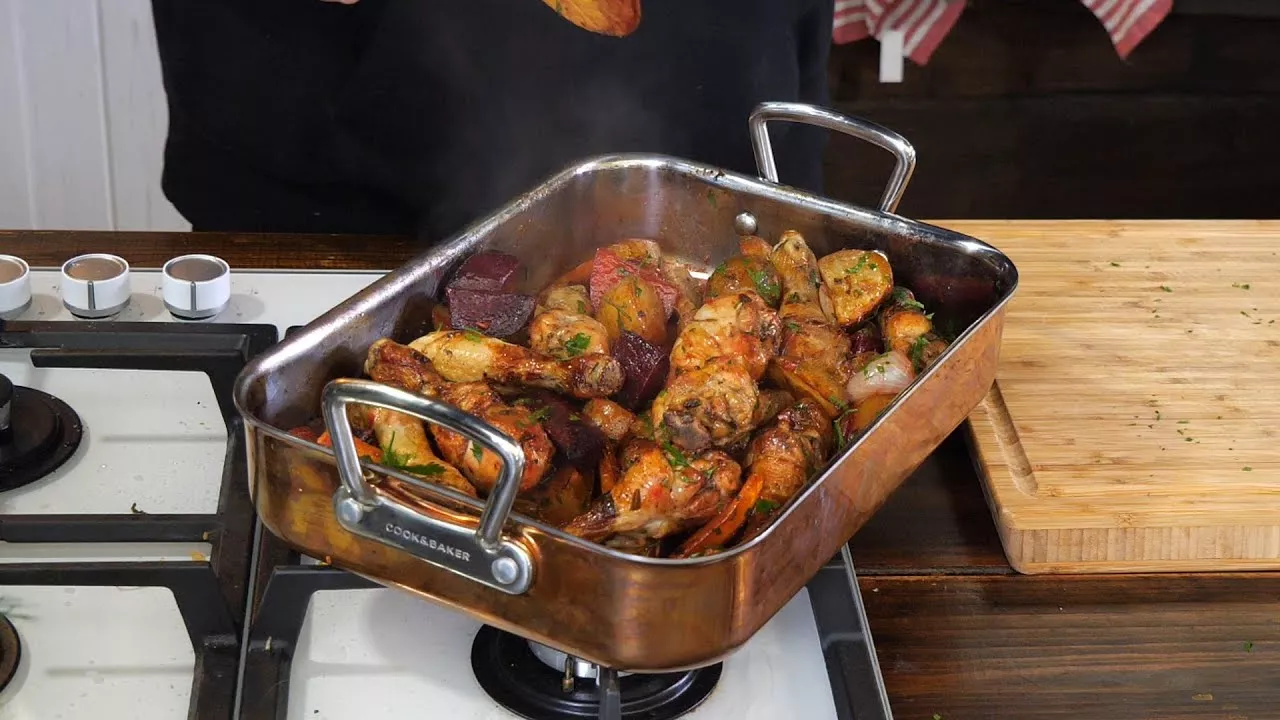 Link do E-booka: Surówki na każdy dzień https://oddasz-fartucha.pl/produkt/25-surowek-na-kazdy-dzien-zdrowo-smacznie-i-szybko/ Film „Pałki kurczaka w duecie z jesiennymi warzywami” to przepis na pyszne, aromatyczne danie idealne na chłodniejsze dni. Zaprezentuje Wam , jak przygotować soczyste pałki kurczaka, które są pieczone razem z sezonowymi warzywami – takimi jak ziemniaki, marchew, buraki czy cebula. Dzięki odpowiedniej mieszance przypraw oraz długiemu pieczeniu w piekarniku, kurczak nabiera złocistej skórki, a warzywa stają się miękkie i pełne smaku. To prosty sposób na zdrowy, kolorowy i sycący obiad, który wprowadza prawdziwie jesienną atmosferę na talerzu. 🍂🍗🥕 składniki: 800g pałek z kurczaka 3 marchewki 500g ziemniaków 2 czerwonw buraki 3 małe cebule 4 ząbki czosnku 60ml oliwy 50 ml octu balsamicznego 2 łyzeczki miodu szczypta płatków chili 1 łyżeczka słodkiej papryki sól,pieprz do smaku natka pietruszki do posypania Rozmaryn