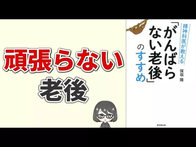 人生の後半は、もう無理にがんばらなくてもいい――そんな「がんばらない老後」を楽しむヒントを紹介します。定年や子どもの独立を迎え、自由になった時間をどう過ごすかで毎日の幸せは変わります。肩の力を抜いて過ごすコツや、朝の散歩で一日のリズムを整える方法、脳を活性化させる散歩の楽しみ方、日々の「いいこと日記」で前向きな気持ちを育てる方法など、誰でも簡単に実践できる習慣を具体的に解説。老後を自由で心地よく、毎日を輝かせる生き方の参考にしてください。 ●今回ご紹介させていただいた書籍● 「「がんばらない老後」のすすめ」 著者:保坂隆 出版社:廣済堂出版 ●Amazonの購入はこちら → https://www.amazon.co.jp/%E7%B2%BE%E7%A5%9E%E7%A7%91%E5%8C%BB%E3%81%8C%E6%95%99%E3%81%88%E3%82%8B%E3%80%8C%E3%81%8C%E3%82%93%E3%81%B0%E3%82%89%E3%81%AA%E3%81%84%E8%80%81%E5%BE%8C%E3%80%8D%E3%81%AE%E3%81%99%E3%81%99%E3%82%81-%E4%BF%9D%E5%9D%82-%E9%9A%86/dp/4331522024?__mk_ja_JP=%E3%82%AB%E3%82%BF%E3%82%AB%E3%83%8A&dib=eyJ2IjoiMSJ9.a3_W-nDgPH_ZJqDfWDo6LQpCnrRqNyvneynmog7SXuU8LnFI9cxzWXYsXU-_BRnV8EanA0tFeEirUoHt5PIWjB6fLsyURNT-xAVAaCnneNo.q8wrceOYhB0cV29vMZhQYK9nKs3oDuCY1rbUIkC6mA8&dib_tag=se&language=ja_JP ●楽天の購入はこちら → https://a.r10.to/hkSOC7 ●目次● 0:00 ご挨拶 2:29 ①できなくなるのは「する必要がなくなった」から 6:12 ②「天国に財布はいらない」という真理 8:20 ③「がんばりすぎない」朝の散歩は、一日のリズムを整える 10:26 ④散歩だって脳トレーニングになる 12:16 ⑤「いいこと日記」にはこれだけの効果がある 13:50 まとめ ●保坂隆さんの他の書籍動画はこちら● 定年=終わりではない!本当の人生はここから始まる【保坂隆】 https://www.youtube.com/watch?v=6cjqTYMJYXE 孤独じゃない!ひとり暮らしシニアのための“心地よい人づきあい”の極意【保坂隆】 https://www.youtube.com/watch?v=09dzoHmlJnI “ちょこっとずぼら”が心地いい。老後の孤独を楽しむヒント【保坂隆】 https://www.youtube.com/watch?v=EBEMMar4lxk モノを減らして心を満たす、シンプルな暮らし方【保坂隆】 https://www.youtube.com/watch?v=egdfxiHN5xI 医師が教える“幸せな節約生活”の極意【保坂隆】 https://www.youtube.com/watch?v=qwr8ytkZ0cU ●当チャンネルについて● ご覧いただきありがとうございます! 【毎週木曜日と日曜日の20時】に、日常で役に立つ素敵な書籍をご紹介させていただいております。 「読後感の良い」動画を目指して、日々奮闘しております。 どなたでもお気軽にご覧ください。もちろん聞き流しもOK! コメントも楽しみにお待ちしています♪ ●制作者紹介● しまこと申します。 「知識は武器になる」と信じて、日々読書を楽しんでいます。 ゆるくマイペースに更新させていただきますので、よろしくお願いいたします。 ●Twitter → https://twitter.com/shimako_10min ●お願い● まだまだ勉強中につき、動画編集・ナレーション等だいぶ粗があるかと思います。 こうした方がいいよ等コメントでご意見・アドバイスいただけましたら幸いです。これから少しずつ改善させていただきますので、よろしくお願いいたします。 ●本書の関係者(著者、訳者、出版社)の皆様● 動画の削除・変更のご要望がございましたら、大変お手数ですが下記いずれかの方法にてご連絡いただけますと幸いです。 【Twitter DM】 https://twitter.com/messages/compose?recipient_id=1576437060659195905 【メール】 shimako_10minutes@hotmail.com 引き続き、ご紹介させていただく書籍の著者を始め、関係者の皆様への敬意を込めてチャンネルを運営してまいりますので、今後ともよろしくお願いいたします。