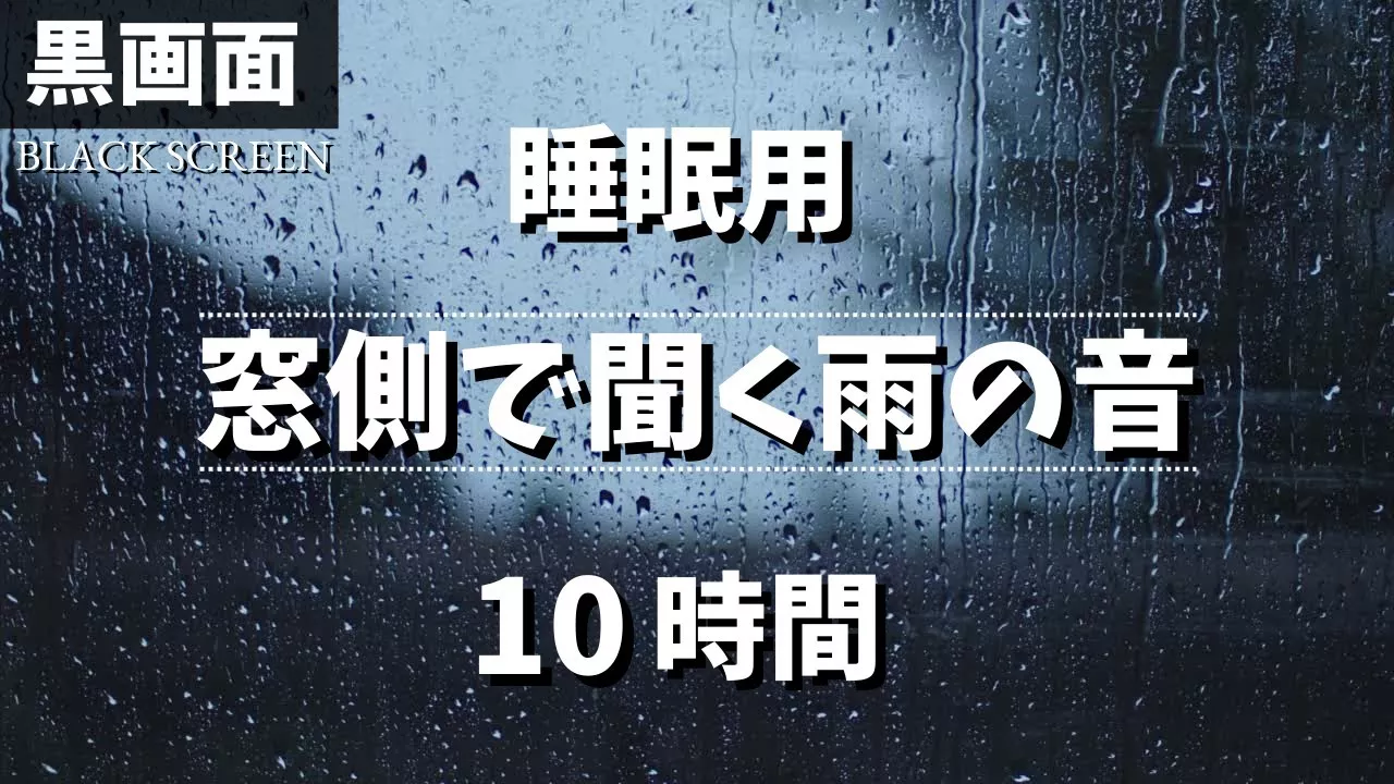 【ぐっすり眠れる】窓側で聞くやさしい雨音 10時間 【黒画面でまぶしくない|睡眠用BGM】 ------------------------------------------------------------------------------------------------------------------------------------------------------------------------------------- ◆雨の音がもたらす6つのメリット ・睡眠の質の向上 ・血圧を下げる効果 ・ストレスホルモンであるコルチゾールの低下 ・集中力と生産性の向上 ・心を落ち着かせ、不安症の改善をサポート ・周囲の騒音を遮断 (マスキング効果) ◆雷の音や車の走行音など、雨以外の音は落ち着かないと思い、可能な限り編集でカットしております。 ◆突然大きな音が鳴ることもありませんので、安心してお楽しみいただけます。 ◆睡眠時に眩しいブルーライトを浴びなくてもいいように動画はすぐに真っ暗になります。 ◆睡眠やリラックスする時だけではなく、勉強や集中したい時にもご利用ください。 ▼チャンネル登録してくれると嬉しいです。 https://www.youtube.com/channel/UCbPi0sOZe1rphsQSY2BtHYg?sub_confirmation=1 ▼再生リスト 8時間・雨の音【黒画面】 https://www.youtube.com/playlist?list=PLAp6hMii_q1nawtF2cPWctx6_YkcL4r0z ▼再生リスト 10時間・雨の音【黒画面】 https://www.youtube.com/playlist?list=PLAp6hMii_q1n7ECOKp9DZz2Xuc6yTTENP ---------------------------------------------------------------------------------------------------------------------------------- ◆録音機材:ZOOM H2n, Shure SM57, MXL V67G ◆画像と映像はなるべく録音環境に近いイメージのロイヤリティフリー素材【著作者の出典表示不要、加工も自由、営利目的、商用利用可】を編集加工して使用しております。