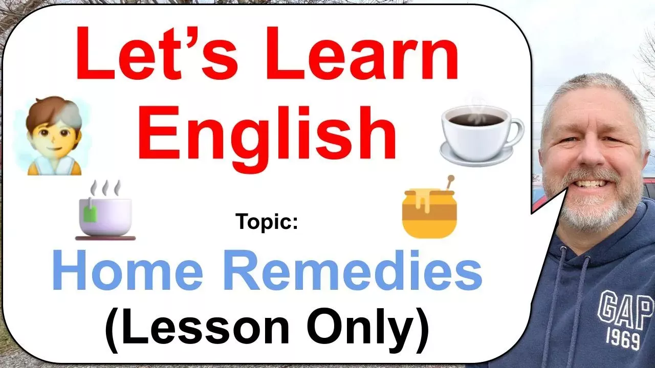 In this English lesson, you’ll learn useful vocabulary and common phrases for talking about simple home remedies for everyday health problems. We’ll look at clear, real-life examples such as sipping tea to soothe a sore throat, using warm or cold compresses for headaches and sore muscles, and applying aloe vera to calm sunburn or irritated skin. You’ll also pick up natural expressions English speakers use when describing minor illnesses, taking care of themselves at home, and dealing with small aches and discomforts that usually don’t need a visit to the doctor. By the end of the lesson, you’ll feel confident talking about basic home treatments and self-care in natural, everyday English conversations. ⌛ Remember: Always watch the video three times. Twice today with the English subtitles on, and once tomorrow with the English subtitles off. This will reinforce the English you have learned! -- ✅ If you would like to become a member of my channel here is the link: https://www.youtube.com/channel/UCZJJTxA36ZPNTJ1WFIByaeA/join ✅ For as little as $1.99 per month you'll have access to the following perks: 1) Priority response to comments. Member's comments always get a response! 2) For 10 minutes during each live stream you will be able to participate in the "Members Only" chat. 3) A cool crown beside your name during live streams and when making comments on videos. 4) Your name in green during live stream lesson chat. 5) You will have access to a members only video each Wednesday called, "Wednesdays with Bob". These are behind the scenes bonus videos with full English transcripts for your listening practice. 6) A full transcript for every Tuesday lesson. 7) Every Monday you'll get a "Week at a Glance" lesson plan on the Posts tab with some suggestions for things you can do that week to improve your English. 8) Early access to my English Vocabulary game app. 9) Shorts about various English phrases. ✅ Join now to receive these perks: https://www.youtube.com/channel/UCZJJTxA36ZPNTJ1WFIByaeA/join ✅ If you prefer to support me via Patreon, you will still receive perks 5, 6, 7 and 8. Here is a link to my Patreon page: https://www.patreon.com/bobthecanadian Thank you for your support! -- ✅SEND ME A POSTCARD: Bob the Canadian P.O. Box 419 Smithville, Ontario Canada L0R2A0 -- TAKE YOUR ENGLISH CONVERSATIONS TO THE NEXT LEVEL: ✅Talk to a real English tutor / teacher at preply: http://tracking.preply.com/SH2X (This is an affiliate, signing up for this service helps support my channel). -- PODCAST: ✅ P.S. If you are interested, you can listen to some of my English lessons as podcasts right here: https://open.spotify.com/show/7sGzXXYhRtsTyhGUORo4Ff --