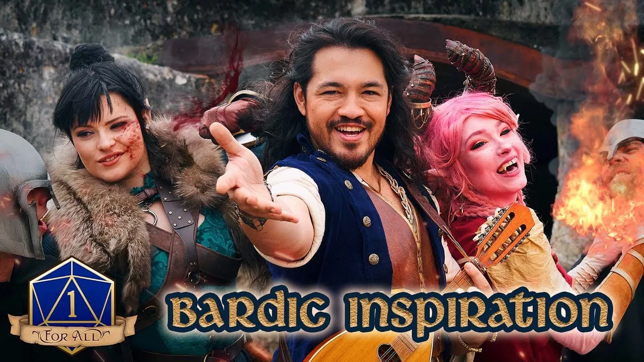 Where shall three heroes go next? Listen to Bardic Inspiration now: https://sptfy.com/BardicInspiration https://gyro.lnk.to/BardicInspirationFrom1ForAll Written & Directed by Elliot Ryan – @technotropism Produced by Goldie Soetianto and Vincent Power Executive Producer: Goldie Soetianto – @vysanthe “Bardic Inspiration” © (2021) (Track ISRC: AUMEV2142216) Lyrics by Jake Nielsen Music by Ned McPhie & Jake Nielsen Orchestration and arrangement by Ned McPhie Performed by Thomas Taufan, Eva Devore, Alessia Medina and Kendall Drury Recording Sound Engineer: Matthew Borsos Master Mix Engineer: Daniel Natoli Recorded at Kiln Studios Starring: Evandra / Eva: Eva Devore – @eva_devore Antrius / Antonio: Forgeling – @forgeling Nixie / Nicole: Fall Cosplay – @fallcosplay Dungeon Master / Patrick: Kendall Drury – @kendallthehuman Prison Warden: Kendall Drury Prison Guard #1: Etienne Reynaud Prison Guard #2: Nick Barraclough Prison Guard #3: Kendall Drury Prison Guard #4: Josh Humphrey Prison Guard #5: Harrison Clarke Prison Torturer: Kendall Drury Cat Percer: Lumi – @little.lumi.cat Stunt Choreography: Josh Humphrey, Thomas Taufan and Elliot Ryan Stunt Performer: Josh Humphrey, Harrison Clarke Dance Choreography: Laura Cagnacci Script Editor: Vidya Rajan Script Supervisor: Fern Mei Sim Storyboard Artist: Yumi Young Unit Manager: Nick Barraclough Unit Assistant: Marc Giammetta Production Assistant: Fern Mei Sim Runner: Manul Japeth ‘MJ’ Gunaratne, Marc Giammetta Director of Photography: Goldie Soetianto 1st Assistant Camera: Neal Von Dinklage 2nd Assistant Camera: Vivian Duong Steadicam Operator: Julius Koivistoinen Stills Photographer: Etienne Reynaud BTS Videographer: Jasmine Suivi Gaffer: Lucky Dreamer Sound Recordist: Gareth Evans Playback: Vincent Power, Sabrina Palepa Timu Costume Designer: Laura Cagnacci Additional Costume Design: Thomas Taufan Standby Wardrobe: Rob Mason SFX Make-up Artist: Jennifer Pryer Assistant Make-up Artist: André Knite Art Director: Kavi Jarrot Props Master: Thomas Taufan Set Designer: Rob Mason Set Builder: Rob Mason Standby Props & Set Dressing: Kavi Jarrot Art Department Runner: Cameron Lum Editor: Elliot Ryan Assistant Editor: Jacob Hogarth Colourist: Goldie Soetianto Visual Effects: Ken Abbot BTS Editor: Nicole Hadjimichael Trailer Editor: Jacob Hogarth Sound Design: Ned McPhie Sound Mix: Ned McPhie Legal Advice: Sam Berry Production Accounting: Matthew Carter Locations Manager: Vincent Power Nurse & Covid Safety: ‘Sabrina’ Palepu Timu Catering: Café Giulia Chef: Stefan Stavropoulos Logo: The Wonyo Intro Sequence: Reuben Jurott Special thanks to: Sam Berry & Chris Chow Lawyers, Matthew Carter and Above the Line Accounting, Kiln Studios, Rolando Ramos & Lindesay House, Cale Bain & Improv Theatre Sydney, Camera Hire Alexandria, Debra Vo, Gabrielle Ferguson and SCREEN AUSTRALIA Translators Spanish: Judith Ramirez French: Yohan Morel Portuguese: Hesblan Harley Russian: Loki & Snack This production was supported by Screen Australia through the COVID-19 Budget Support Fund Program. Support future videos: ► Patreon: https://www.patreon.com/deerstalkerpictures ► TeeSpring: https://teespring.com/stores/1-for-all-store ► Enamel Pins: https://www.etsy.com/au/listing/799109591/1-for-all-enamel-pin-official Follow us: ► Twitter: https://twitter.com/deerstalkerpics ► Instagram: https://www.instagram.com/deerstalkerpictures ► Facebook: https://www.facebook.com/deerstalkerpictures #1ForAllSeason3 #1ForAllDnD