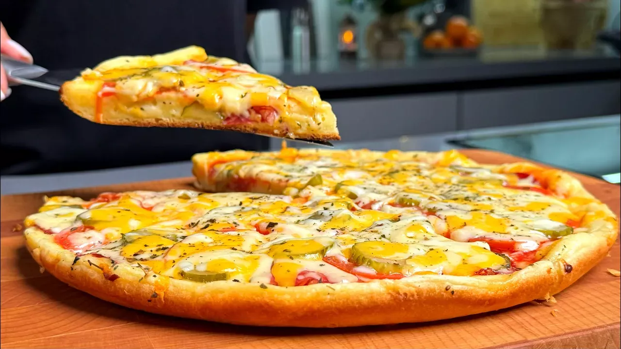 После праздников остались продукты, которые нужно использовать, однако времени много на кухне проводить не хочется. Так давайте же сделаем быструю пиццу на сковороде, тесто месить не надо, ждать расстойки тоже. Самая быстрая ПИЦЦА ! Все смешали и на сковороду! Проще и быстрее рецепта не знаю, да его просто нет ! Получается очень даже вкусно. Готовьте с удовольствием, ну а мы будем рады, если рецепт Вам пригодится и Вы оцените его по достоинству! Продукты: -сметана-5ст.л -майонез-5ст.л. -яйца -2шт -соль-щепотка -мука-9ст.л.(170гр) -разрыхлитель -1/2ч.л. -кетчуп-1ст.л. -начинка любая (у меня-колбаса, огурец маринованный, помидор-1/2шт, сыр, базилик сушёный)
