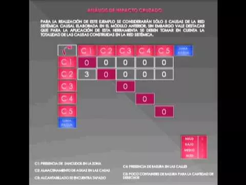 La Matriz de Impacto Cruzado es una herramienta de planificación que permite observar, mediante un valor numérico, la preponderancia que tiene una de las causas de un problema en la existencia de éste. Este video forma parte de un curso de planificación al cual se accedía a través de Moodle. Allí se encontraban un conjunto de herramientas de planificación, en su mayoría relacionadas entre sí, pero no todas requerían de la utilización de un video tutorial como estrategia de enseñanza. Es por esa razón que algunos asuntos están inconclusos, porque este video fue diseñado para formar parte de un curso en el cual se complementaba el contenido con otras estrategias de enseñanzas (guías, foros, manuales, entre otros). Por otro lado, el 3.4 representa el Promedio de Actividad, éste es un valor que se utiliza para la realización de otra herramienta de planificación denominada Gráfico de Motricidad-Dependencia (GMD). El GMD busca determinar cuáles son las causas de un problema que tienen mayor impacto en el mismo y por tanto se deben atacar para tener mejores resultados al momento de nuestra acción.
