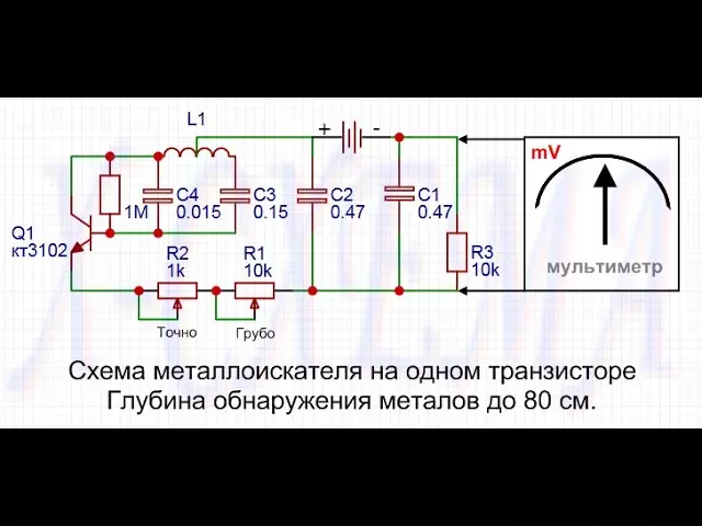 Металлоискатель или металлодетектор на одном транзисторе с цифровой индикацией своими руками В качестве индикатора можно использовать мультиметер или данную схему как приставку к мультиметру. Схему металлоискателя и ее описание смотрите у меня на сайте https://x-cxema.blogspot.com/2020/01/metalloiskatel-na-odnom-tranzistore.html