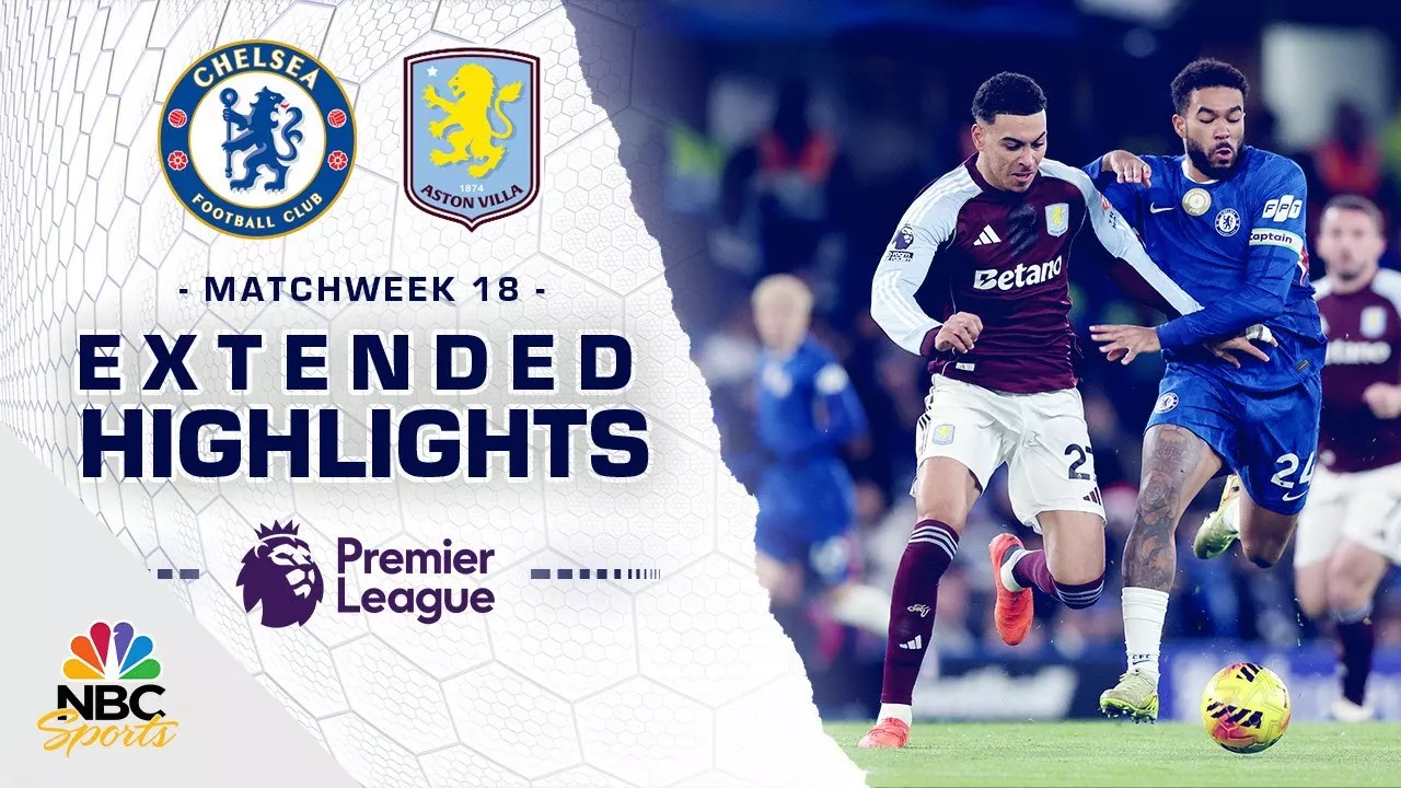 Relive full-match highlights from Aston Villa's top-four showdown with Chelsea at Stamford Bridge in Matchweek 18. » Subscribe to NBC Sports: https://www.youtube.com/nbcsports?sub_confirmation=1 » Watch the Premier League live on Peacock: https://peacocktv.smart.link/v82e9dl56 » Get Premier League news on NBC Sports: https://www.nbcsports.com//soccer/premier-league NBC Sports Group serves sports fans 24/7 with premier live events, insightful studio shows, and compelling original programming. NBC Sports is an established leader in the sports media landscape with an unparalleled collection of sports properties that include the Olympics, NFL, NBA, Premier League, Big Ten, NASCAR, PGA TOUR, the Kentucky Derby, IndyCar and many more. Subscribe to our channel for the latest sporting news and highlights! The Premier League across NBC Sports Group launched in 2013 with their biggest and broadest programming commitment to-date in the United States. With live multi-platform coverage of all 380 games, analysis from best-in-class talent and extensive surrounding coverage all week long, NBC Sports Group has become the ultimate destination for new and existing Premier League fans. The Premier League maintains strong and consistent reach across NBC, USA Network, CNBC, and NBC Sports Group’s live streaming products, led by the biggest stars and most prestigious teams in the world. Visit NBC Sports: https://www.nbcsports.com Find NBC Sports on Facebook: https://www.facebook.com/unsupportedbrowser Follow NBC Sports on Twitter: https://twitter.com/nbcsports Follow NBC Sports on Instagram: https://www.facebook.com/unsupportedbrowser https://www.nbcsports.com/nfl/sunday-night-football https://www.nbcsports.com/nascar https://www.nbcsports.com/soccer/premier-league Chelsea v. Aston Villa | PREMIER LEAGUE HIGHLIGHTS | 12/27/2025 | NBC Sports https://www.youtube.com/nbcsports