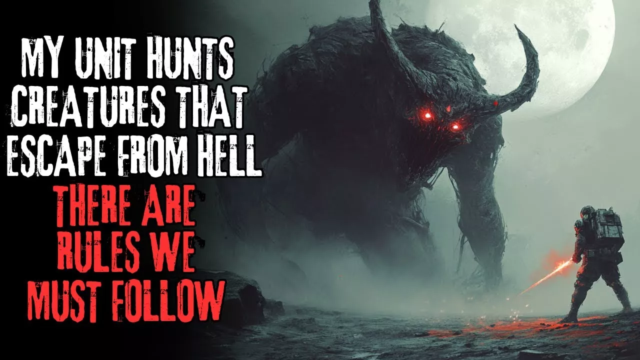 Story Title: "My Unit Hunts Creatures That Escape From Hell, There ARE RULES We Must Follow" Creepypasta Author: ►Dr. Codex Artwork : ►Dr. Codex Support the Music : ► Artist : Myuu ► https://www.youtube.com/@Myuu Subscribe if you’re a fan of creepy narrations, rules creepypastas, list-style creepypastas, and everything strange and eerie in the world of horror storytelling! New, spine-chilling content drops every weekday, so hit that subscribe button and join our journey into the dark! Join this channel to get access to perks: https://www.youtube.com/channel/UCTJXd7UzP2ahY1TUShUS9ig/join