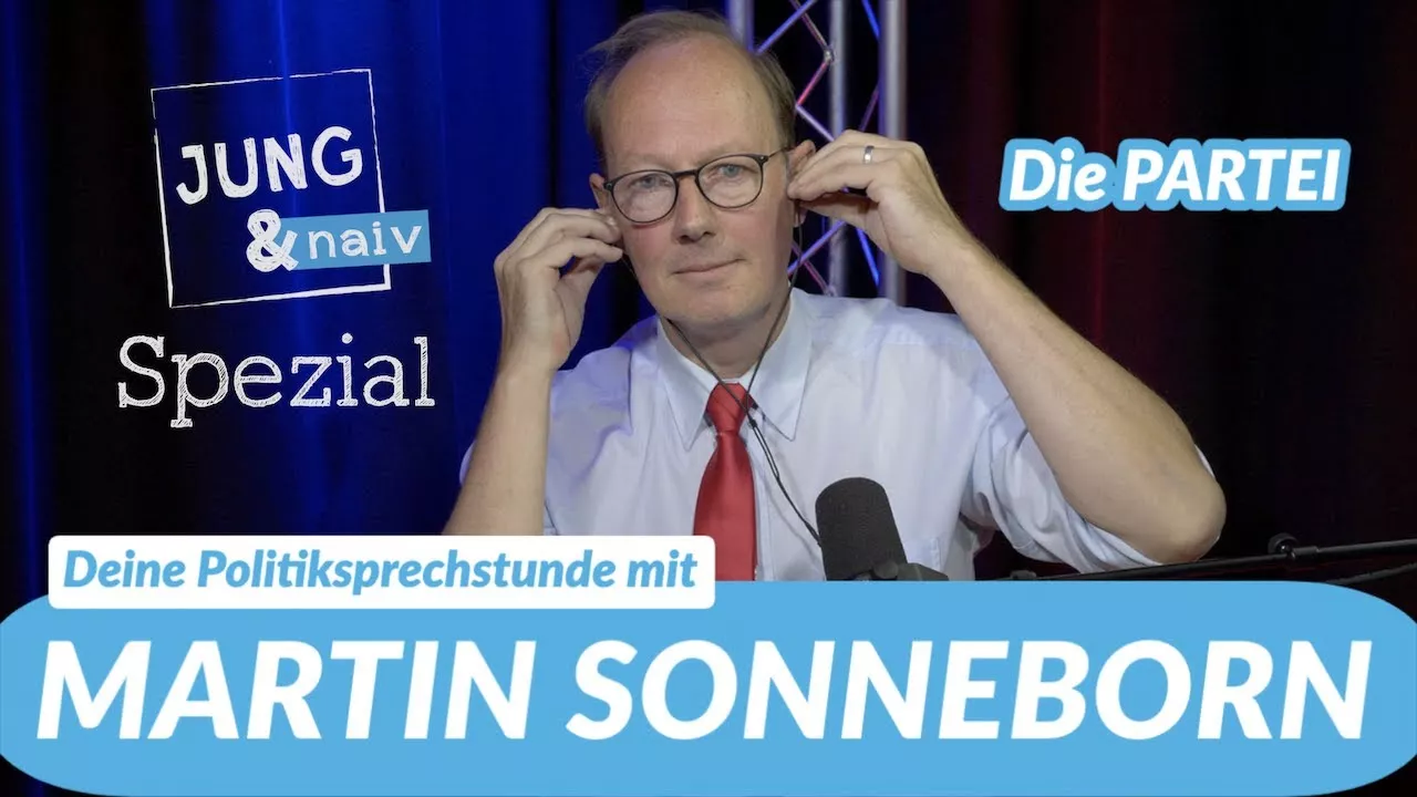 Unterstützt unsere Arbeit ► https://www.paypal.com/paypalme/JungNaiv Diskutiert im Jung & Naiv Forum ► https://forum.jungundnaiv.de/ Martin Sonneborn, Parteivorsitzender der PARTEI, beantwortet eure Fragen zur Bundestagswahl Du möchtest mit Martin Sonneborn über dein politisches Thema reden? Beteiligt euch im Chat oder: Bewirb dich via Whatsapp oder Telegram (max. 5 Zeilen oder 20 Sek Audionachricht): 0152/590 13 700 | Alternativ per Email: hansjessenshow@jungundnaiv.de | Wir melden uns dann zurück! Bitte unterstützt Jung & Naiv finanziell: Konto: Jung & Naiv IBAN: DE854 3060 967 104 779 2900 GLS Gemeinschaftsbank PayPal ► https://www.paypal.com/paypalme/JungNaiv